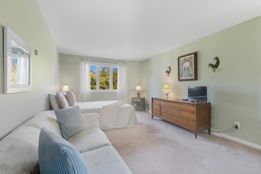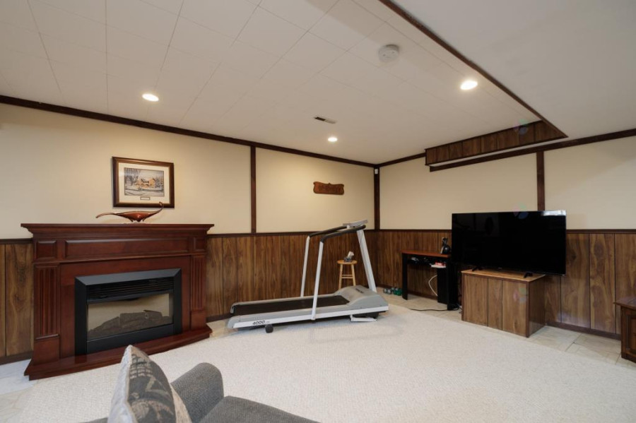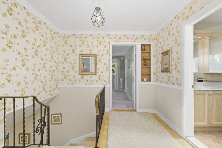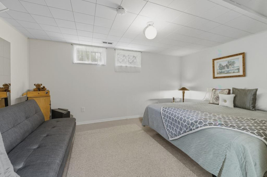 二楼共设四间卧室,主卧带套间浴室及步入式衣帽间。其余卧室均铺设拼花木地板,布局方正,采光良好,适合家庭成员或书房使用。楼上另设一间全浴室,满足家庭日常需求。地下室为全装修空间,配有大型娱乐室、卧室、储藏区及机械间。卧室空间灵活,可作客房或办公区使用。整体地下空间干净实用,功能多样。