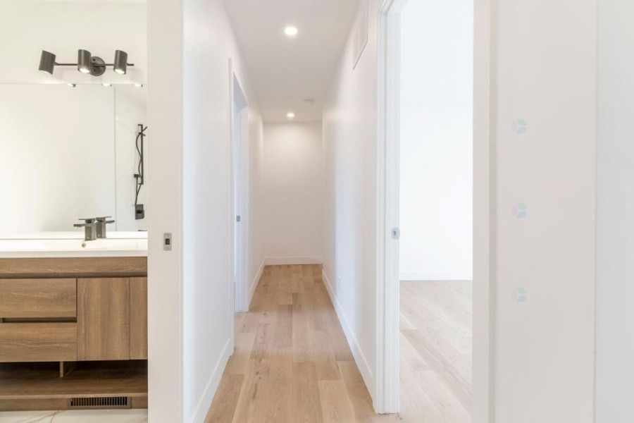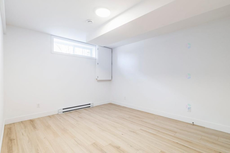 二楼设有四间舒适卧室。主卧配有步入式衣帽间与套间浴室,卫浴以现代陶瓷材质铺设,空间明亮实用。其余卧室布局合理,窗外景观优美。二楼另设有一间全浴室,方便全家日常使用。地下室为全装修空间,设有大型娱乐室、一间卧室、一间全浴室及一间带窗的办公区,亦可改作第五间卧室,灵活度高。地面铺设复合木地板,整体明亮干净,适合多功能使用。