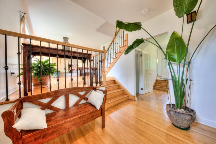 三层配置三间卧室及一间全卫;主卧空间宽裕,窗景良好,其余两间卧室均具备实用收纳。地面为硬木铺设,卫浴空间保持整洁。入口层另设一间卧室与一间卫浴,可灵活用于长辈房、书房或访客区,适合多代同堂或居家办公需求。房屋配备强制送风供暖与中央热泵系统,兼具能效与舒适度。外部设有四车位车道与内置单车库,出行便利。露台朝向后院,地块平整开阔,周围成熟植被围绕,私密性佳,非常适合家庭户外活动与休闲。