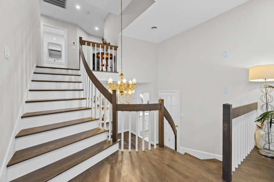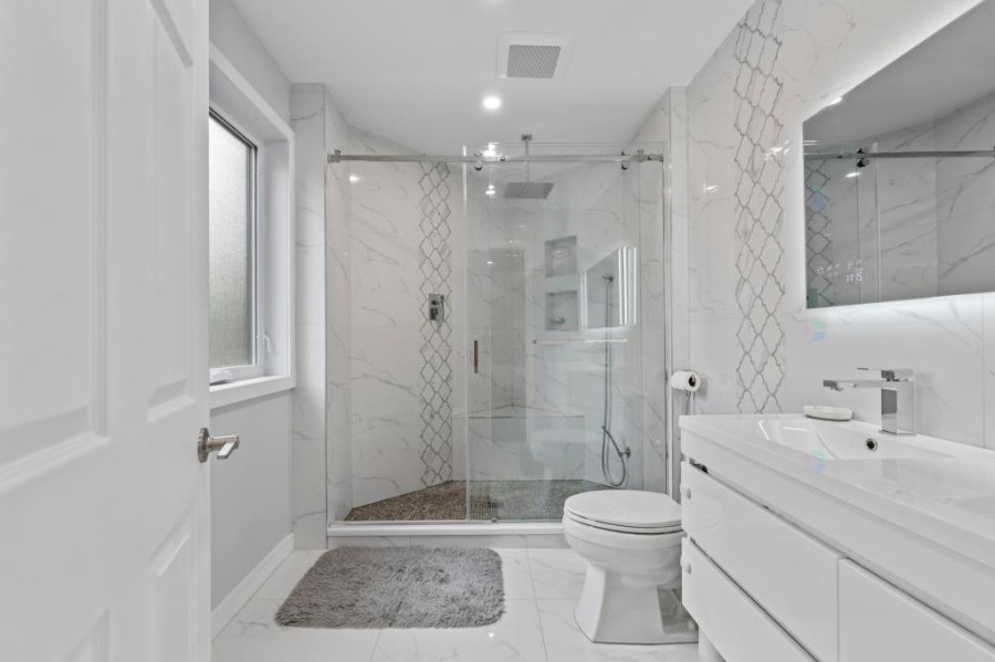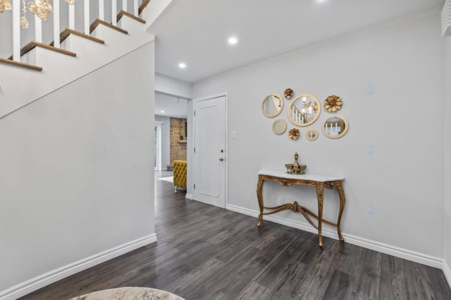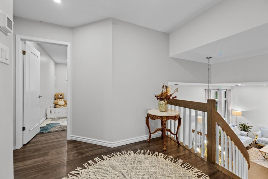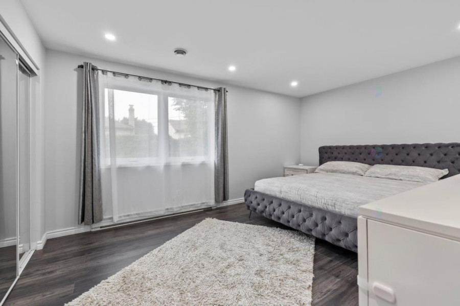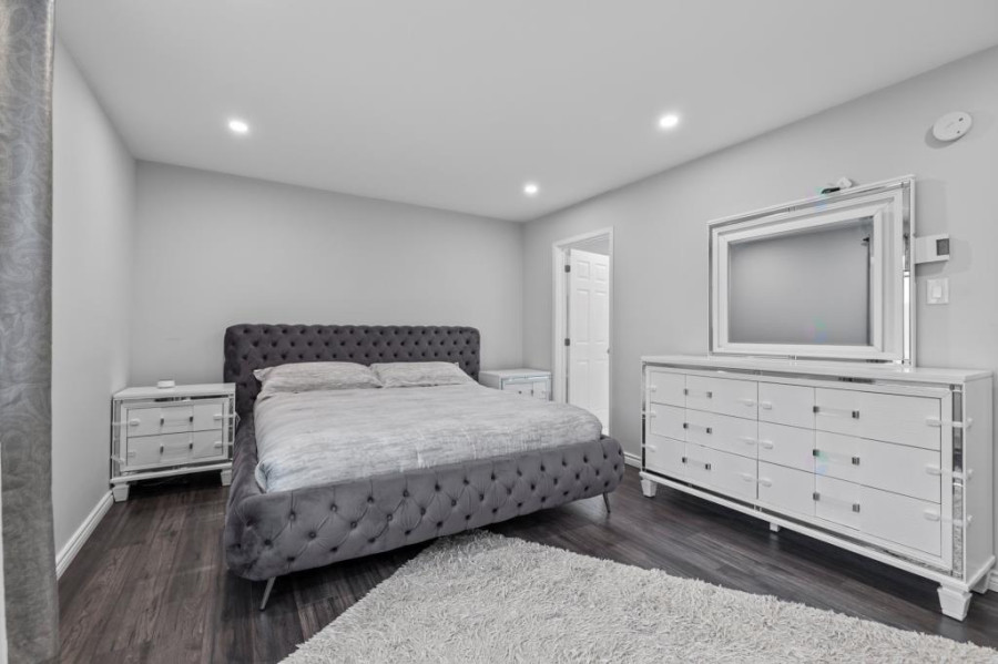 二楼设有三间卧室,其中主卧配有步入式衣帽间与全翻新的套内卫浴,装修简洁现代。其余两间卧室面积方正,共用另一间全新家庭浴室,整体空间布局合理,功能分区明确,适合家庭成员独立使用。地下层已全面装修,设有大型娱乐区、办公室/第四卧室及完整浴室,灵活适应不同家庭需求,可作为影音室、游戏区或访客套房使用。车库为1.5倍宽设计,提供额外储物空间,出入便利。
