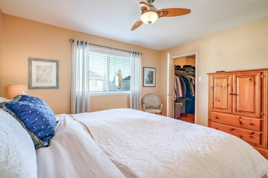 主层设有通透的客餐厅,客厅铺设实木拼花地板,大窗引入充足自然光;餐厅与厨房相连,并配有通向后院露台的玻璃推拉门,方便户外用餐与活动。厨房布局合理,操作台面充裕,储物空间完善,适合家庭日常使用。主层还配有独立洗衣间与盥洗室,生活动线顺畅。