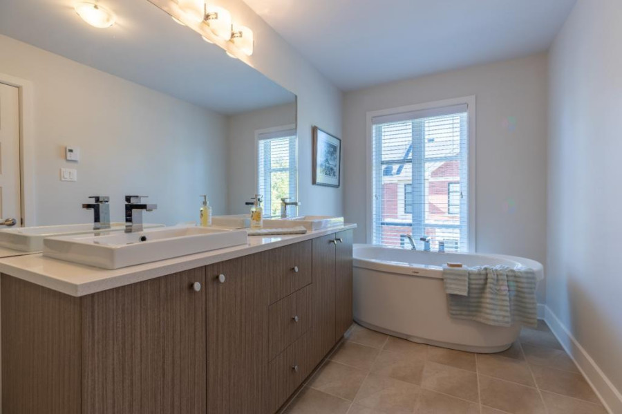 本栋现代端户联排别墅位于Pointe-Claire市中心西区,坐落于Donegani大道安静内街,临近Cedar Park火车站与未来REM轻轨站,地理位置优越,步行可达学校、公园、商圈与社区设施。社区整洁安全,周边生活机能完善,适合重视便利性与舒适度的买家。