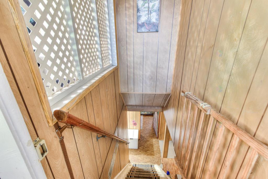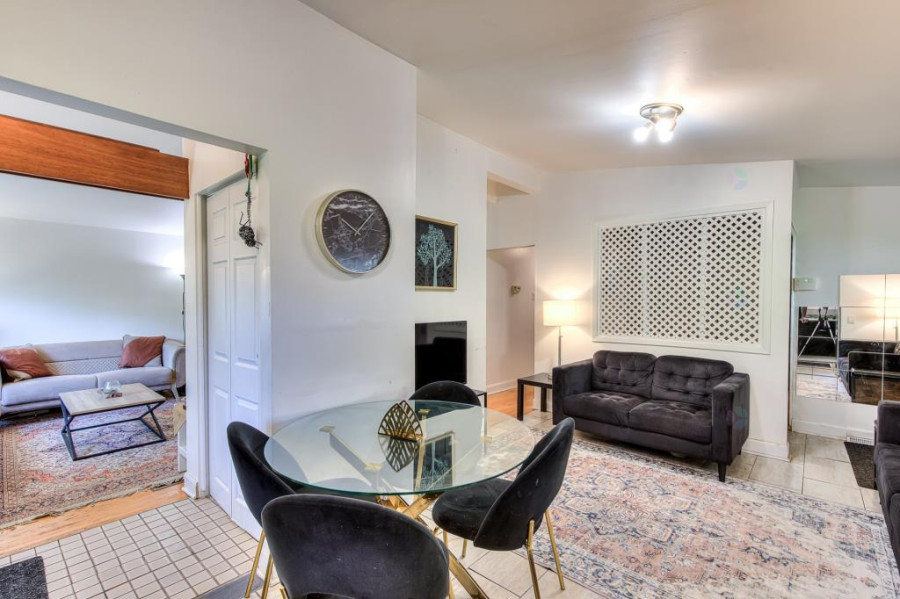主层设开放式客餐空间,客厅铺设实木地板并配备壁炉,采光通透、氛围温馨。厨房设计紧凑,配备现代电器与早餐角,动线顺畅;主层另有三间卧室与一间完整浴室,适合家庭日常居住。整体空间保养良好,色调明亮,格局实用。