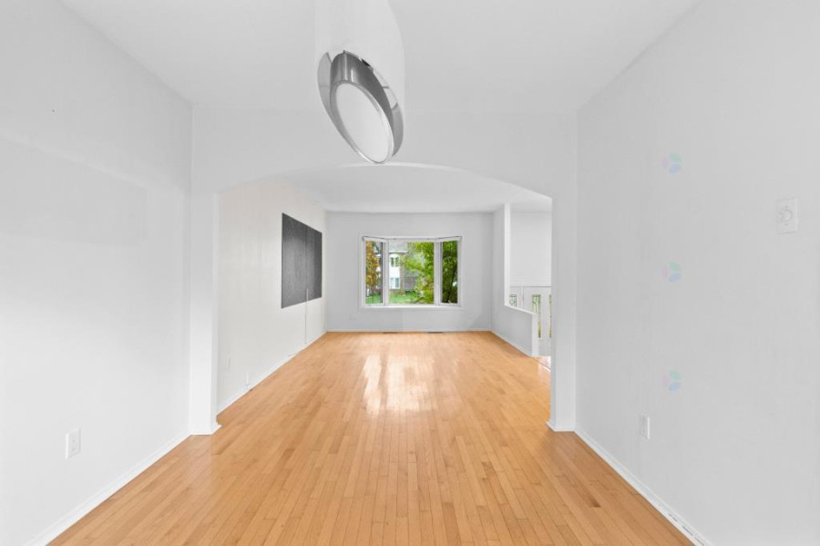 主层空间布局方正明亮,客厅与餐厅相连,铺设实木地板,大面积窗户令自然光线充盈全屋。厨房空间宽敞,配有充足橱柜及工作台面,适合家庭日常使用。主层设三间卧室与两间浴室,主卧带独立盥洗室,动线清晰,空间实用。地下室为全装修空间,设有额外卧室、家庭活动区、洗衣房与储藏间。层高充足,布局灵活,可作娱乐室、健身房或多功能工作区使用。