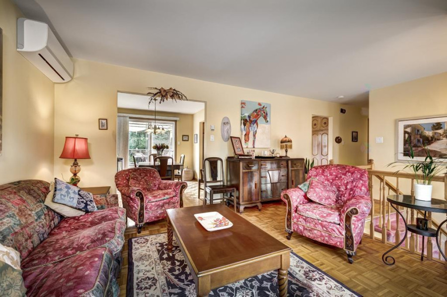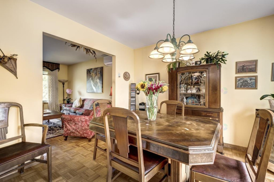 主层空间布局合理,客厅与餐厅铺设实木地板,采光明亮。厨房宽敞实用,配有大量橱柜及工作台面。卧室区设三间房间,主卧空间舒适,浴室经翻新,采用现代瓷砖与玻璃淋浴间,整体风格清爽。地下室为全装修空间,层高六英尺以上,设有家庭活动室、完整浴室及工作间,并配有独立外部出入口,适合多功能使用或额外生活空间。