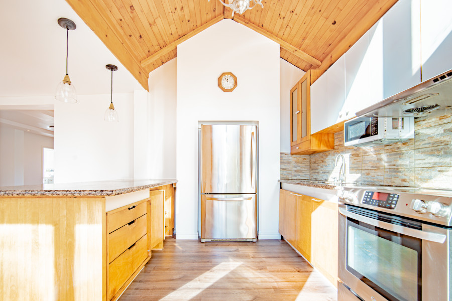 住宅设有四间卧室与两间浴室(其中一间配有按摩浴缸),非常适合家庭居住或接待宾客。原有的阳光房经过精心改造,如今成为开放式厨房与餐厅,通透明亮、自然光线充足,营造出舒适宜人的生活氛围。