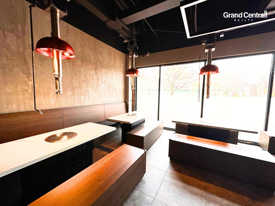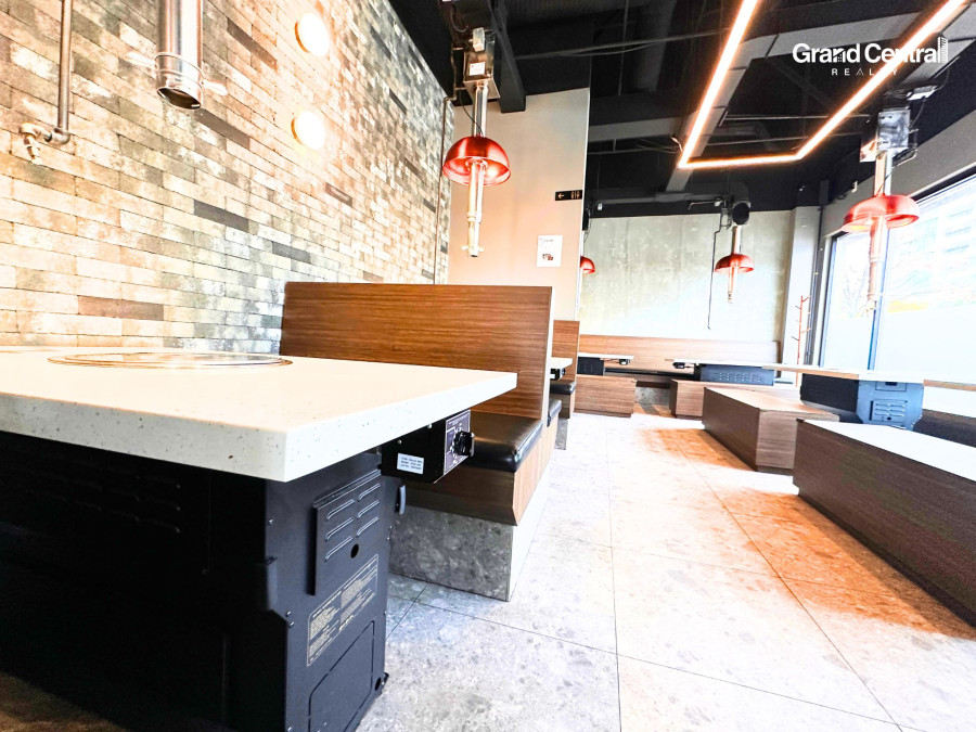 餐厅面积1,402平方英尺,空间布局高效合理,配备全新设施,包括11张独立燃气烧烤桌,每张桌子均配有专用排烟罩。50座酒牌可营业至凌晨。租赁稳定,剩余租期8年,无拆迁条款,为买家提供安心保障。并提供充足街边停车位,便利顾客就餐。