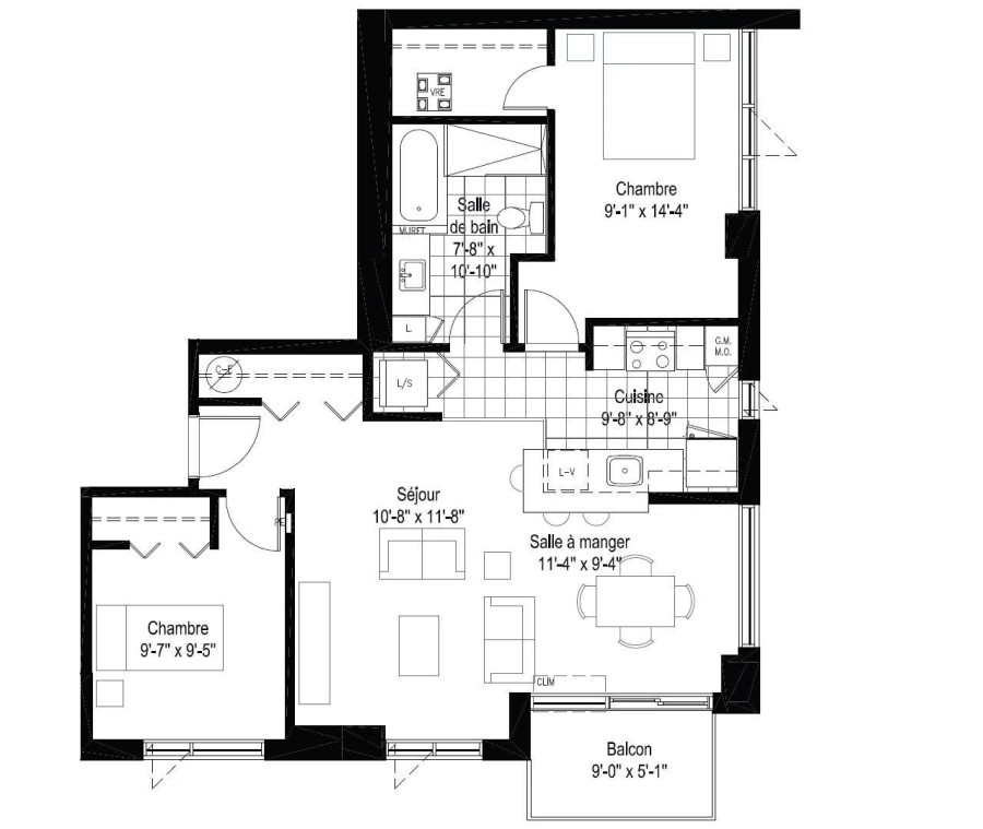 Saint-Laurent超近明珠轻轨站宽敞明亮2卧带1室内车位出租