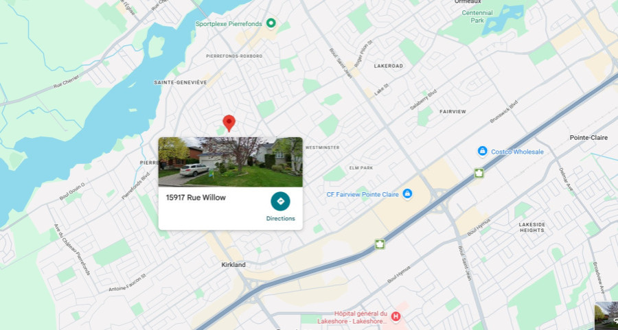 【地理位置】15917 Rue Willow Montréal (Pierrefonds-Roxboro) H9H 4H2