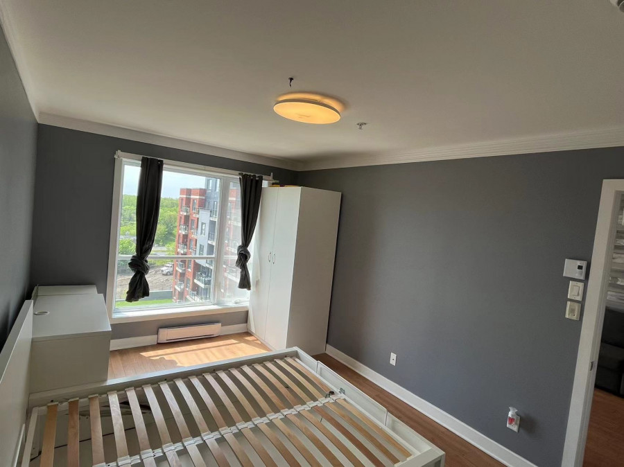3个半, 房间全部朝南,落地玻璃窗,无遮挡,视野好(1个卧室/1个卫生间/1个厨房/客厅/阳台,卧室有壁橱), 位于7楼,大楼步行5分钟Angrignon地铁战站和多路公交总站,楼下步行范围内有:购物中心,银行,沃尔玛,麦当劳。华人超市,中国餐馆,托儿所在隔壁楼步行1分钟,就在小区内。租金是1650刀/月,包括:热水,地下车位,不包电费和网费。房间内包括:全新冰箱、全新洗烘一体机,炉头、空调,公寓带室内健身房,桑拿房。1年租约,物业规定租客不可养宠物。家具可议。