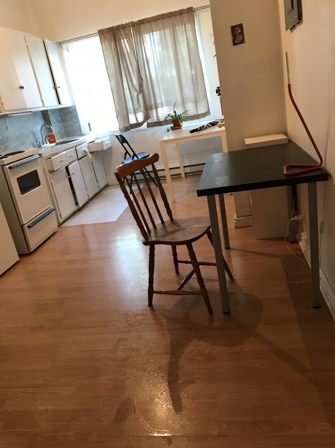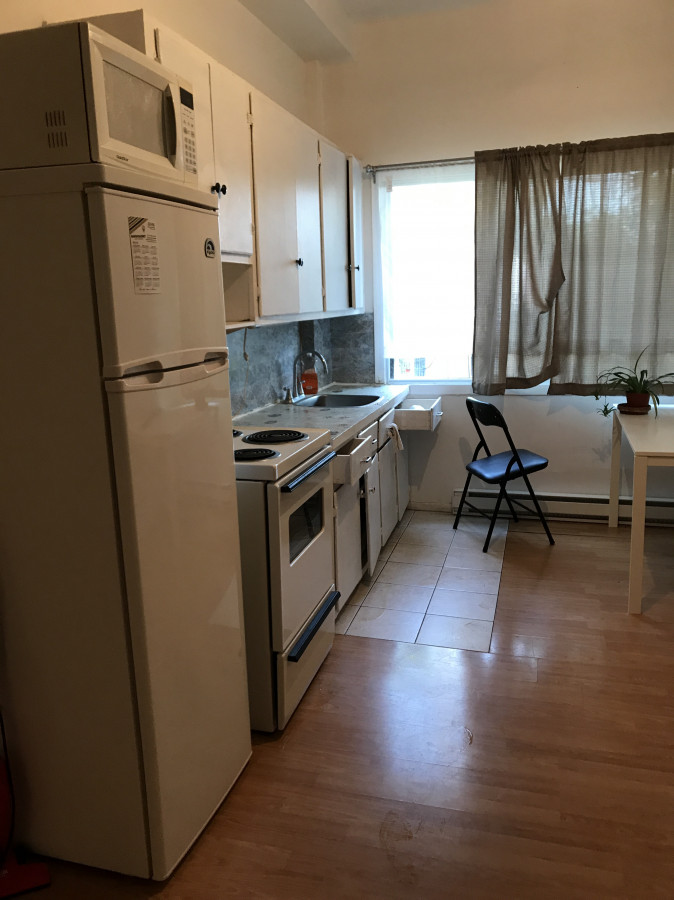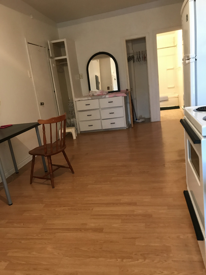 需要一独立于他人、厨卫独享的空间吗? 如是, 请看: 一半帕文(英文叫STUDIO) 3 (三层之3)2 (MONK地铁2分钟)1 (新近装修 1.5,自用厨卫), 水电暖简单家具全包 并奉送上网。 光线明亮,安静卫生。室内楼梯,暖气温度自控。夏天空调提供。坐地铁10来分钟即可到市中心,唐人街。靠银行,超市,运动场等,月租金950加元,即可入住。 一年起租。如短租,租金会上浮。(1890 dArcy McGee, Montreal, H4E 2K2)