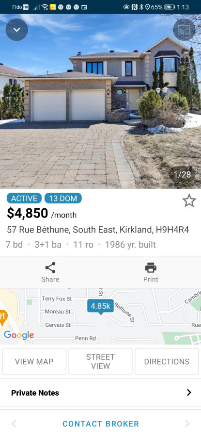 有豪宅出租地址57 rue Bethune Kirkland 八个半3+1洗手间