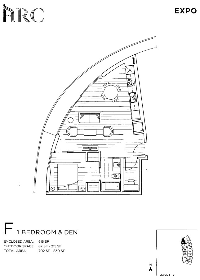 $3000/1卧室加书房/615' The Arc 9/F 溫市中心豪华公寓