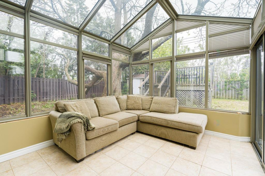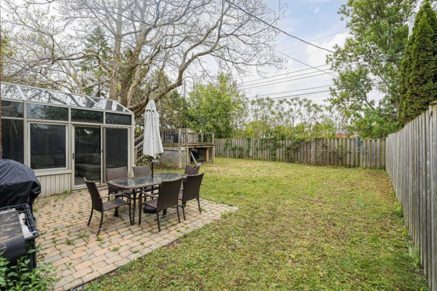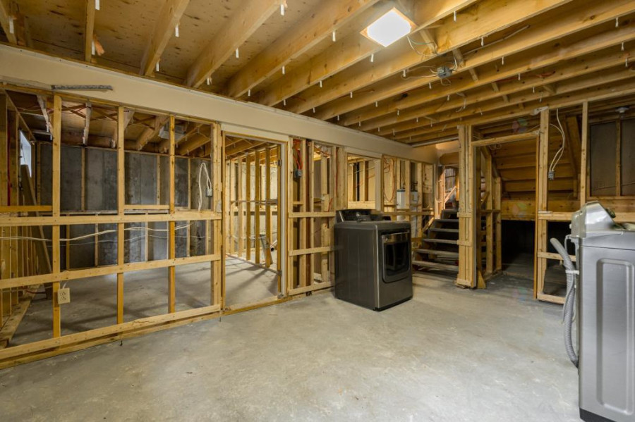 地面层(ground level)设有超大家庭厅(配备木柴壁炉)、阳光房(solarium)与通往后院的滑门,极大增加了生活空间与采光效果。此外,地下室已开框但未完工,拥有完整高度(6英尺以上),目前为游戏室使用,后期可自由规划为影音室、健身房或额外卧室等功能区。后院与街尾绿地相连,自带露台与围栏,私密性好。整块地形平坦,为孩子活动与户外聚会提供极佳空间 。