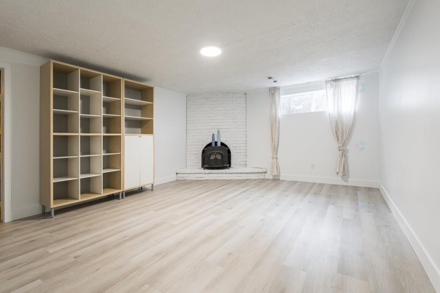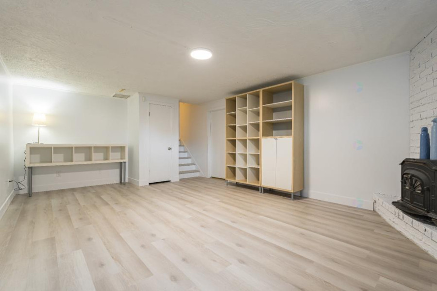 地下室已全面完成装修,设有额外一间卧室与一间完整浴室。另一侧为大型家庭活动空间(13.8 X 17.5 尺),铺设复合地板,是理想的家庭影音或休闲区域。另设储物柜与内置式绿柜橱架,实用性强,适合家庭收纳需求。