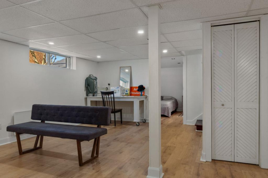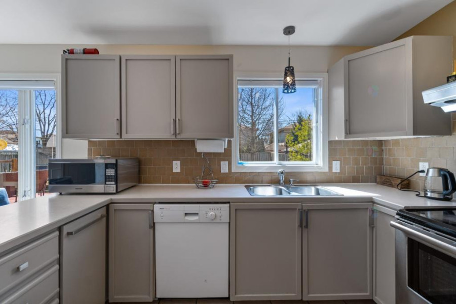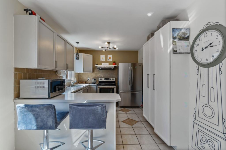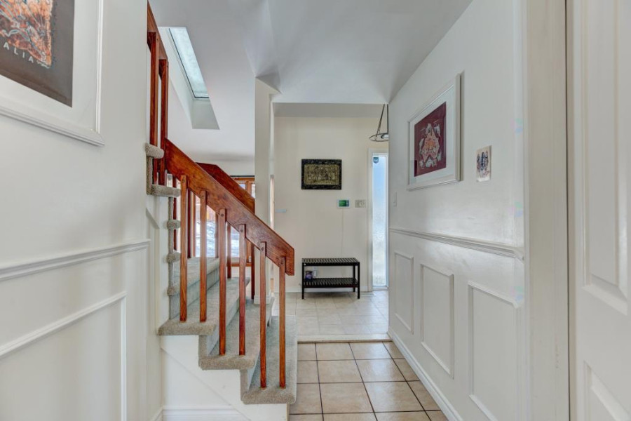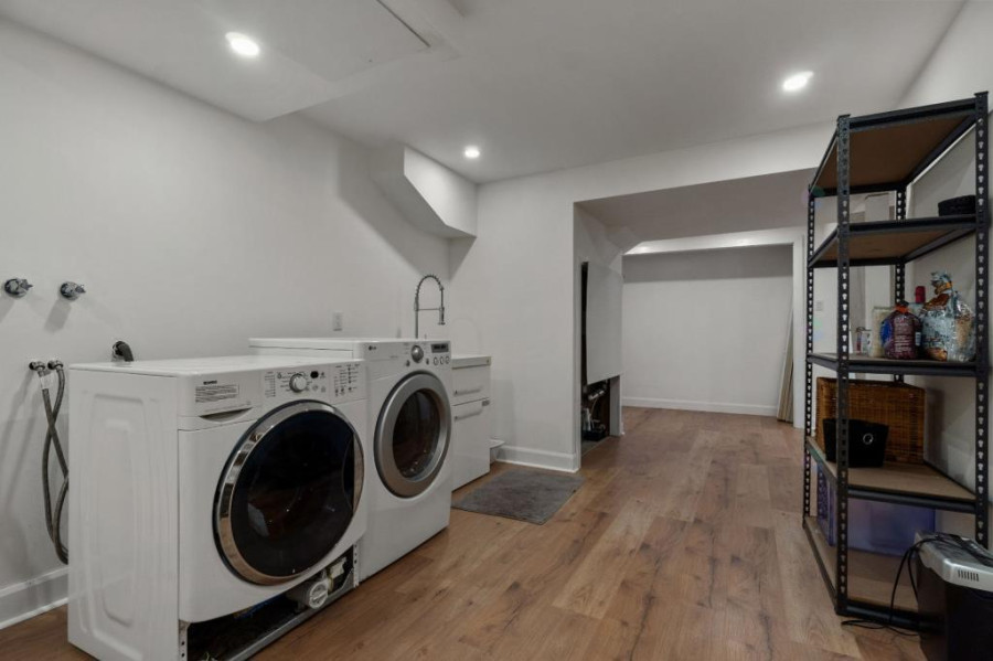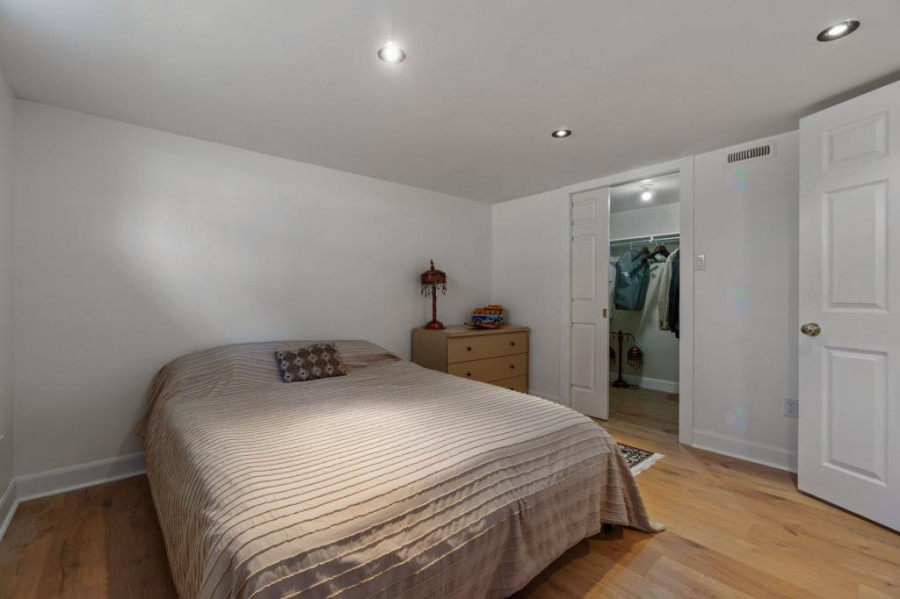 地下室为全装修空间,2019年全面翻新,设有一间额外卧室、大型家庭娱乐厅及洗衣房。洗衣区宽敞明亮,并预留第三浴室安装条件。地板统一铺设木质复合材料,整体风格现代,适合亲友聚会、影音室或青少年独立活动空间。附带单车库与双车道停车位,后院铺设露台,并设有SPA、喷灌系统与储物空间,绿植围篱维护良好,确保私密性与可用性。全屋配备热泵、中央吸尘系统、屋顶于2022年更换,厨房橱柜门、墙面与灯具均为近年翻新成果,整体居住状态出众,适合注重生活品质的家庭买家。