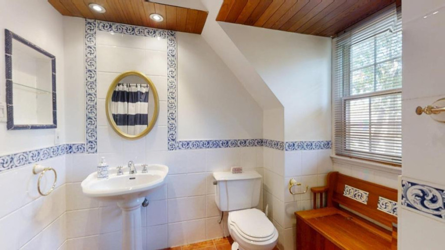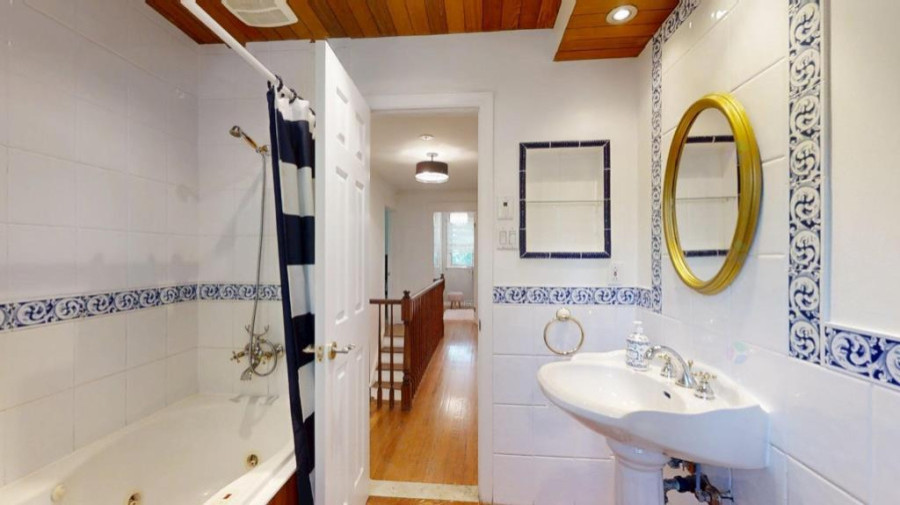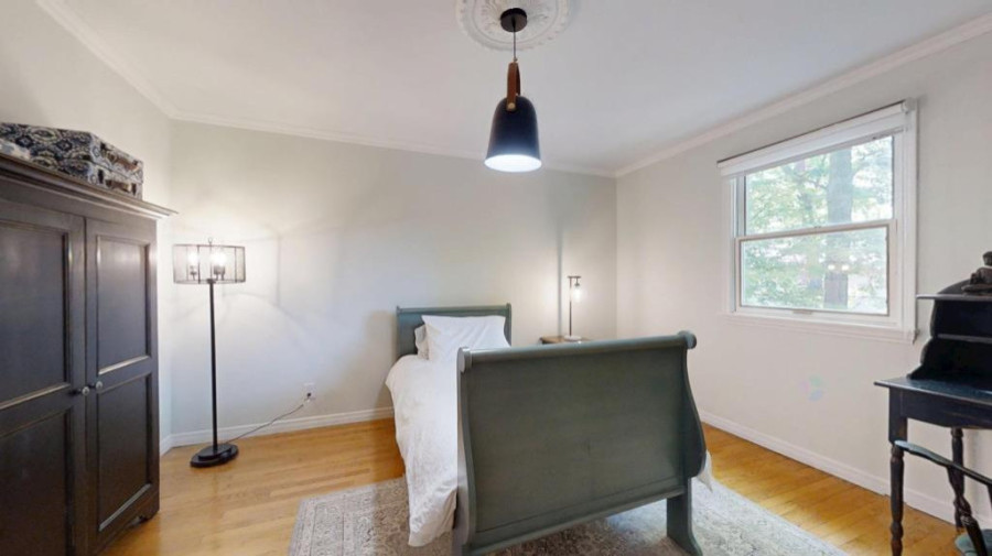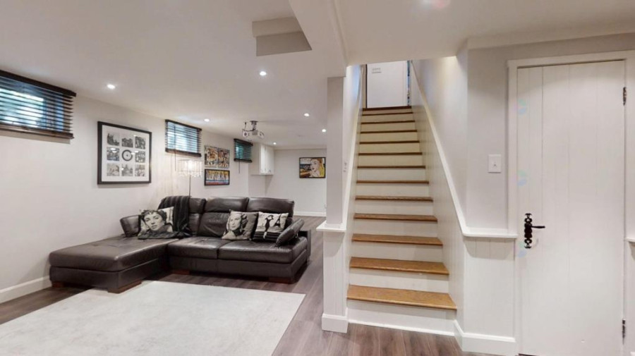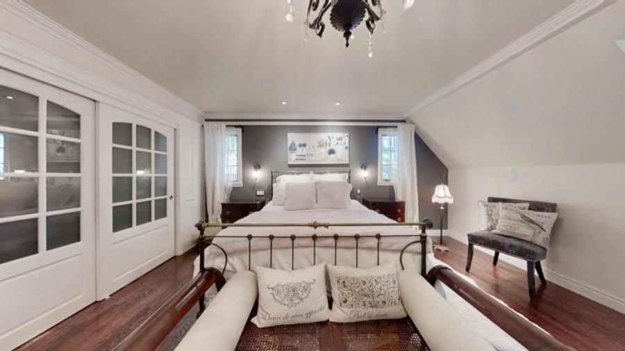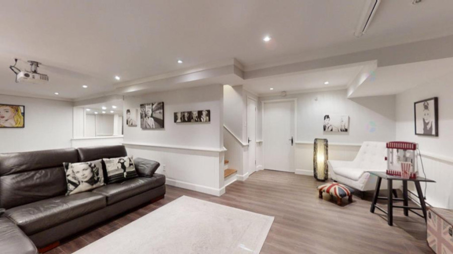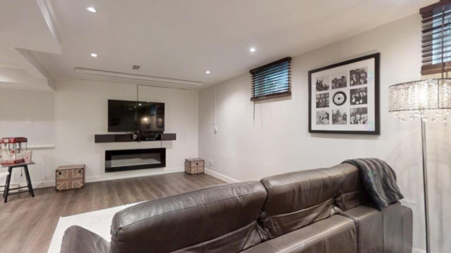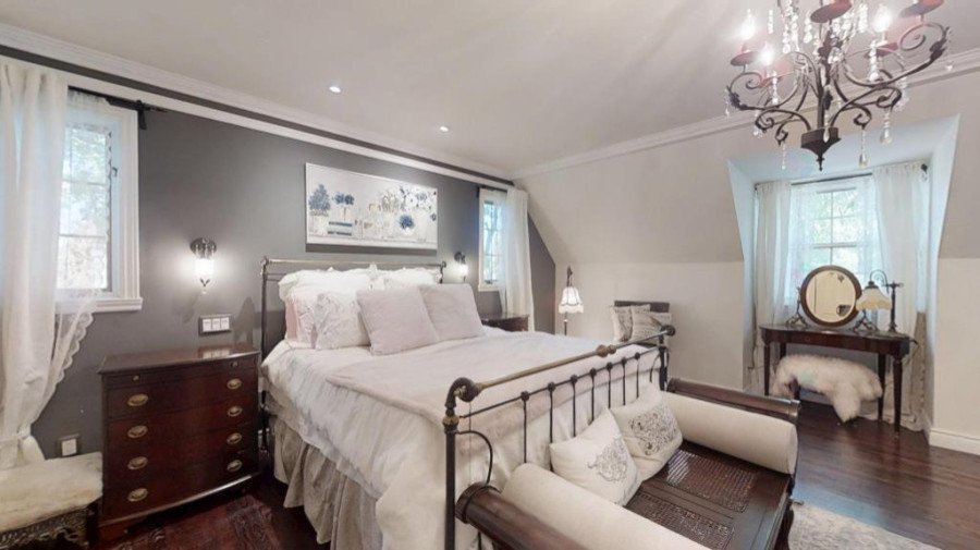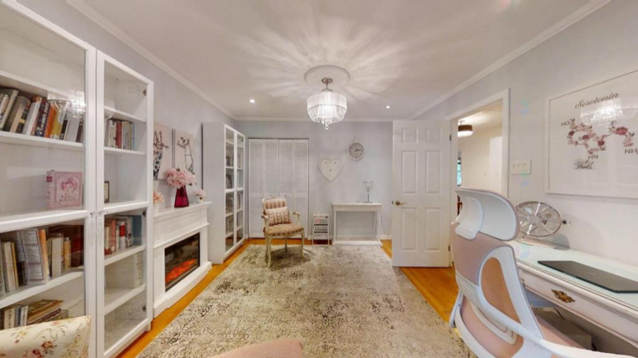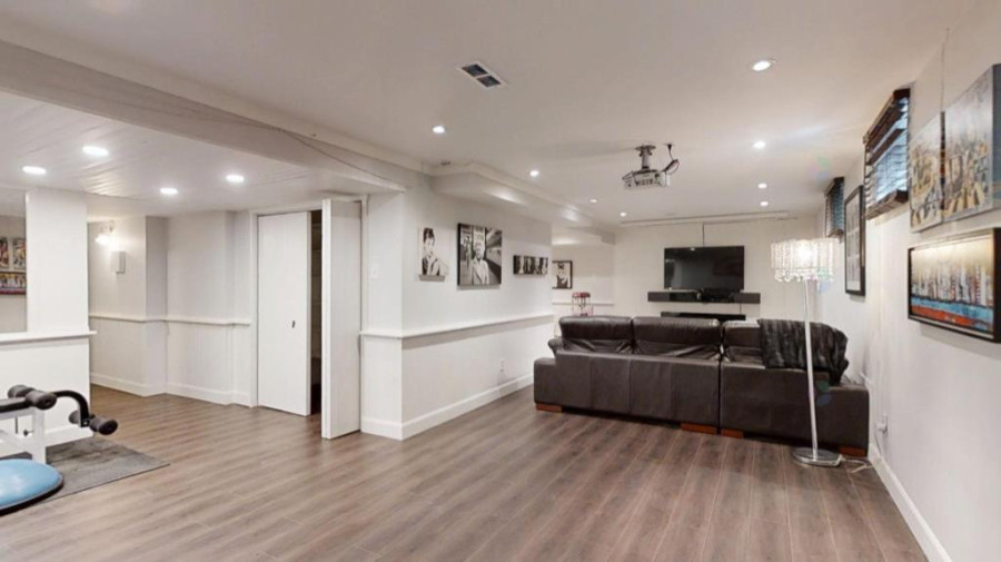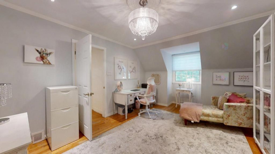 二楼设有五间卧室,皆为实木地板,空间宽敞,采光良好。主卧套房面积达16 x 24英尺,设有专属卫浴、双衣橱与独立步入式衣帽间。二楼另配有两间完整卫浴,均为近年翻新,部分设有浴缸、独立淋浴及双洗手台,设备完善。地下室已全面完工,设有大型娱乐室、独立办公室、新翻洗衣房与第四间完整卫浴,另有储藏区与双通道走廊。特别适合设为家庭影院、健身区或青少年独立空间使用,并附有内建投影设备。