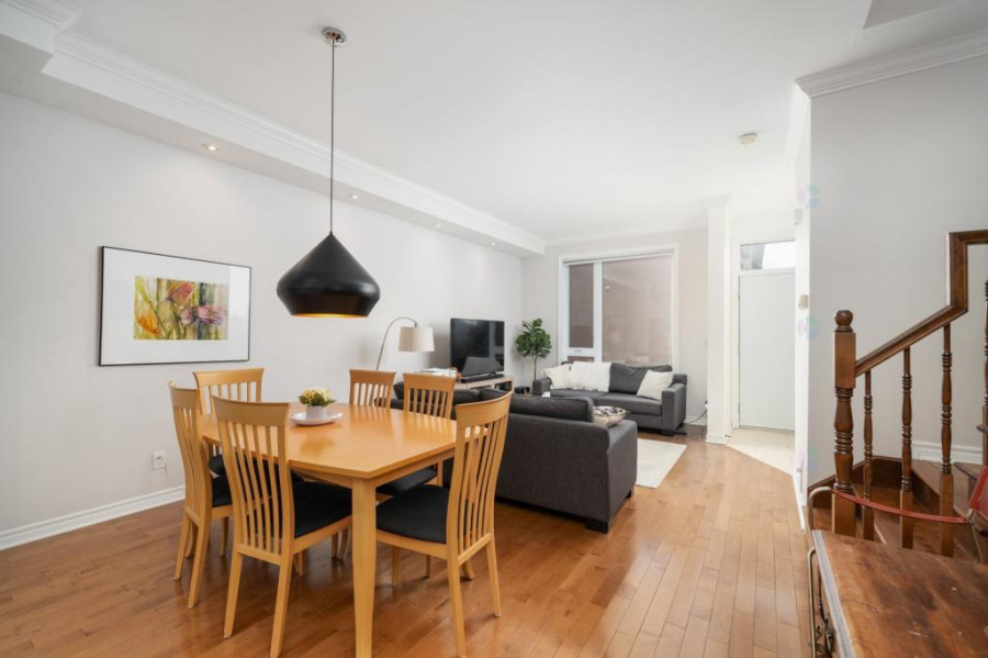 本套联排别墅位于西岛Beaconsfield市的Sherwood宁静街区,步行可达通勤火车站与Angel Woods森林公园,社区环境绿意盎然、氛围悠闲。生活机能完善,近高速、公园、学区与大型购物中心,适合注重通勤效率与生活品质的买家。物业由2009年建成,维护良好,内外风格现代简洁,配有双车位加热车库与独立砖墙露台,结合实用格局与开放式设计,展现出高性价比与居住舒适性。