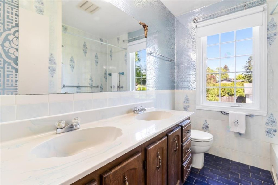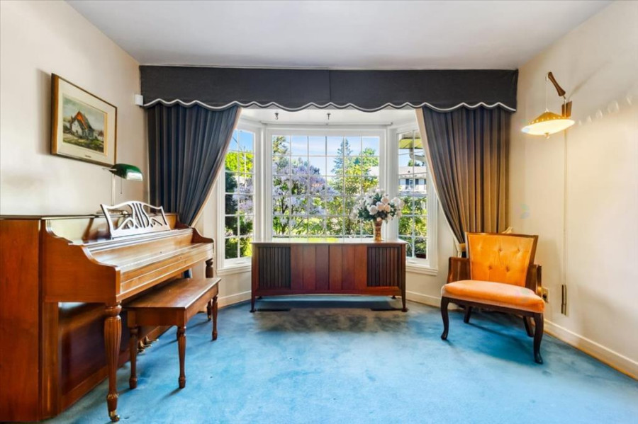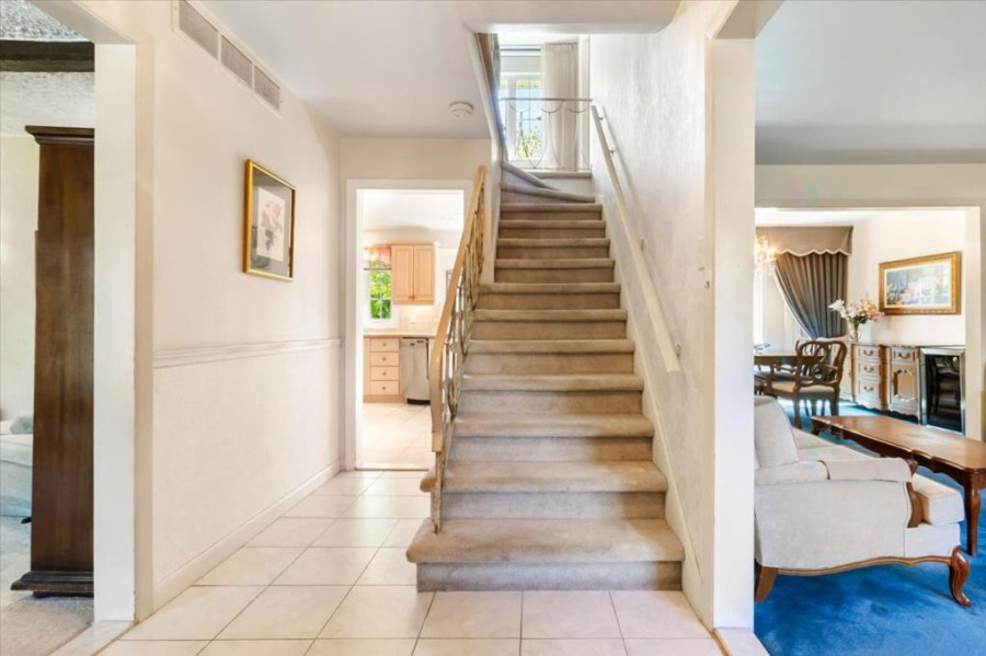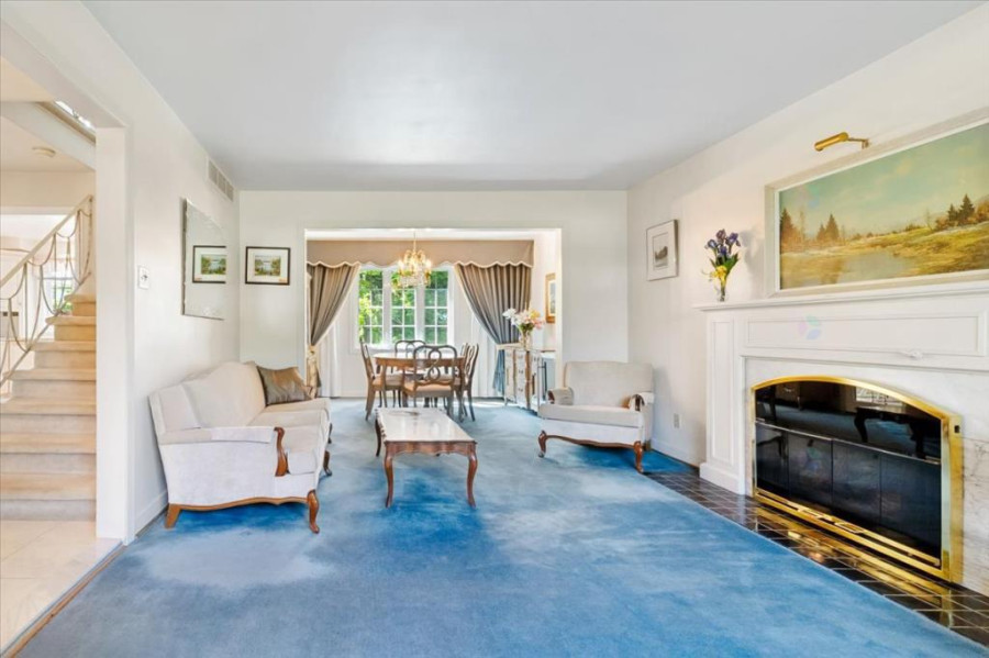主层采用传统cross-hall格局,分设客厅、餐厅、家庭厅与厨房等四大空间,地面以地毯覆盖,原始硬木地板仍完整保留。厨房空间宽敞,采光良好,并设独立餐区。客厅配有燃气壁炉,适合日常起居与接待宾客;家庭厅与餐厅可灵活连接,提升活动流动性。主层另设独立洗手间,动线清晰,实用性高。