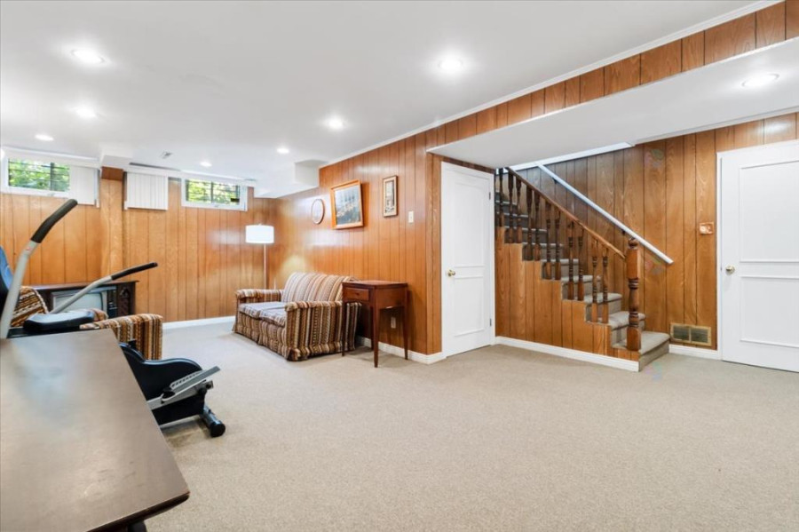 二楼配置四间卧室,其中主卧面积达12.6 x 15.2英尺,其余三间次卧空间方正,采光良好,地面为木或地毯铺设,居住舒适度高。全层设有完整卫浴一间,空间整洁,功能齐备。地下室为全装修空间,设有大型游乐区、额外浴室、洗衣房与储藏间,功能完整,适合用作家庭娱乐、健身或独立工作空间。地基为浇筑混凝土,结构稳固,层高充足。