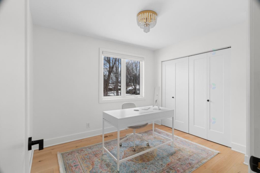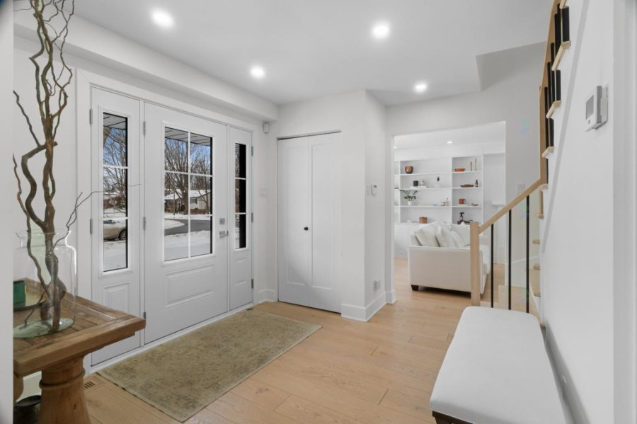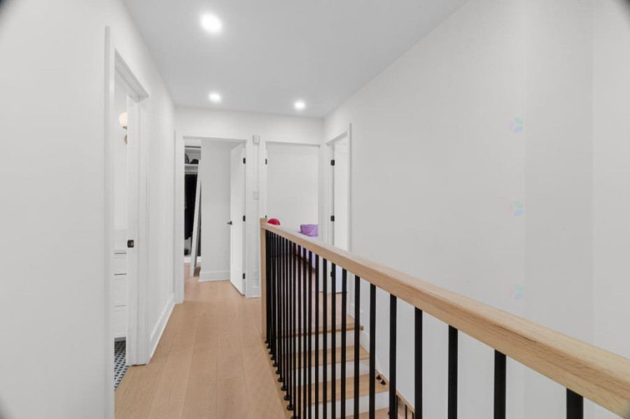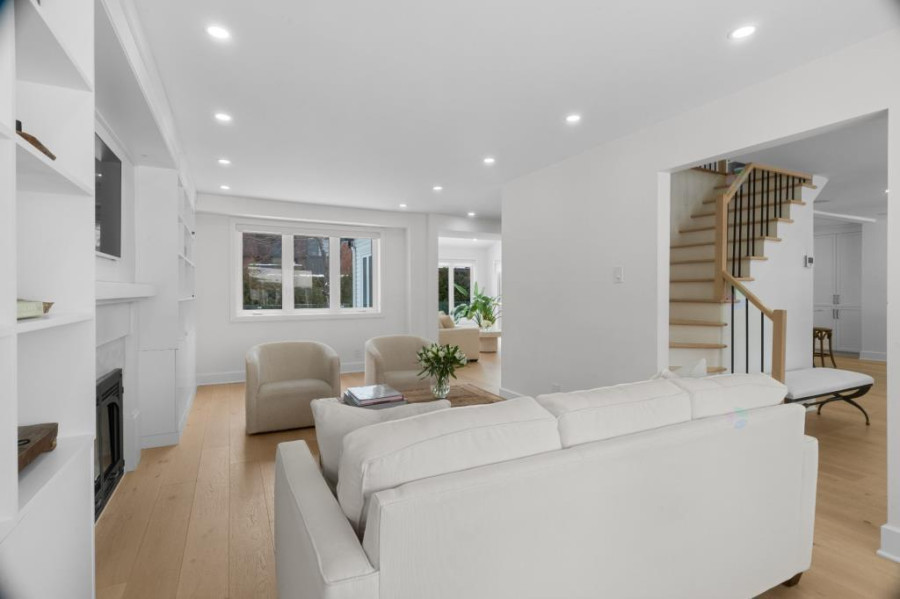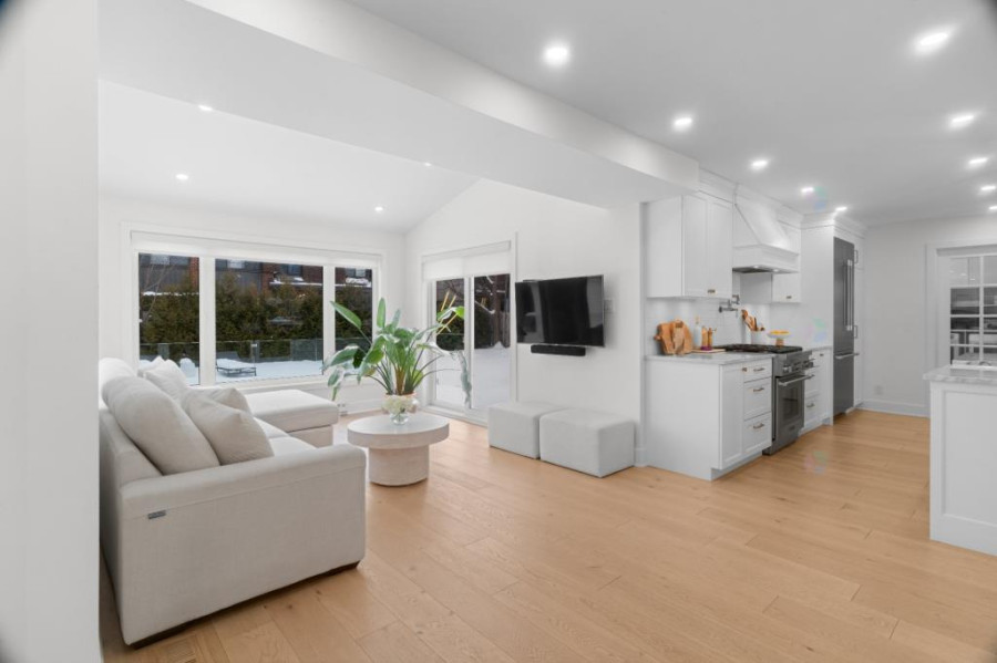 本栋现代风格双层独立屋位于Beaconsfield西北部Sherwood社区,地段安静、绿意环绕,邻近公园与学区名校(Saint-Rémi小学与Félix-Leclerc中学),兼顾隐私性与生活便利。2021年屋主全面翻新,涵盖屋内外结构、水电系统、厨房、卫浴、地面及装饰设计,整体风格现代而温润,呈现出高度完成度与即刻入住的舒适性。