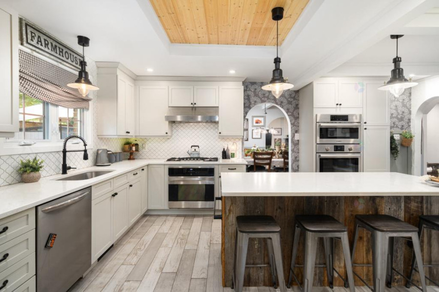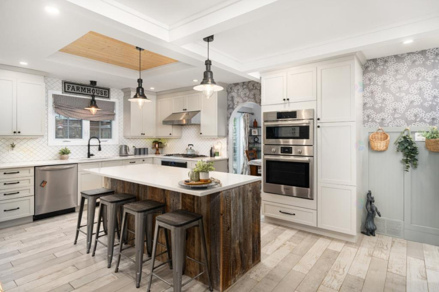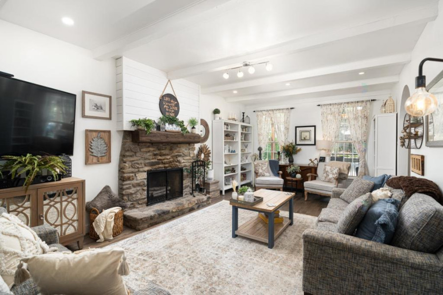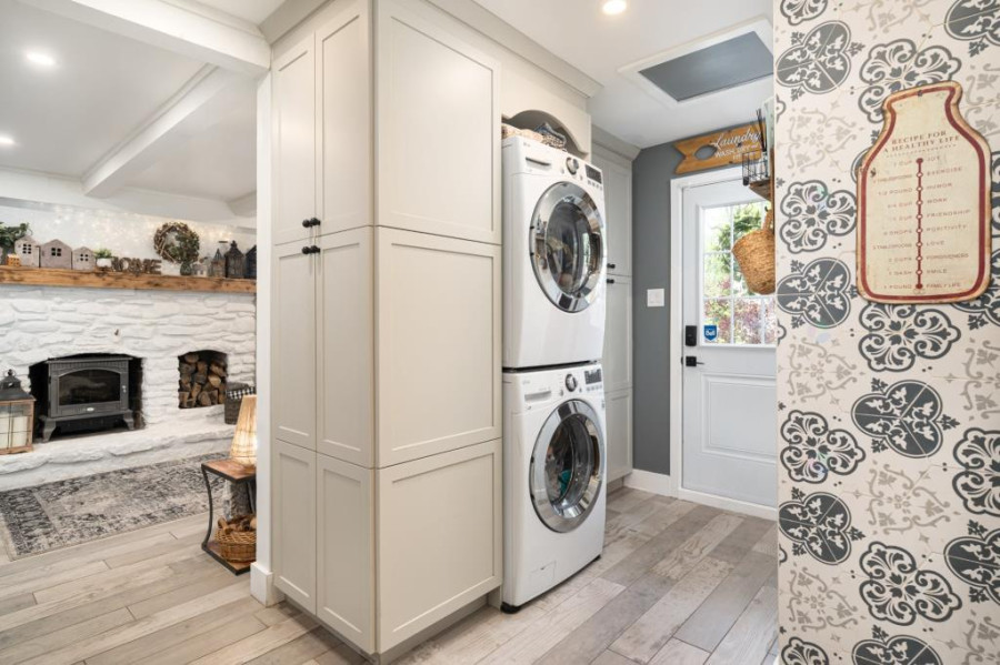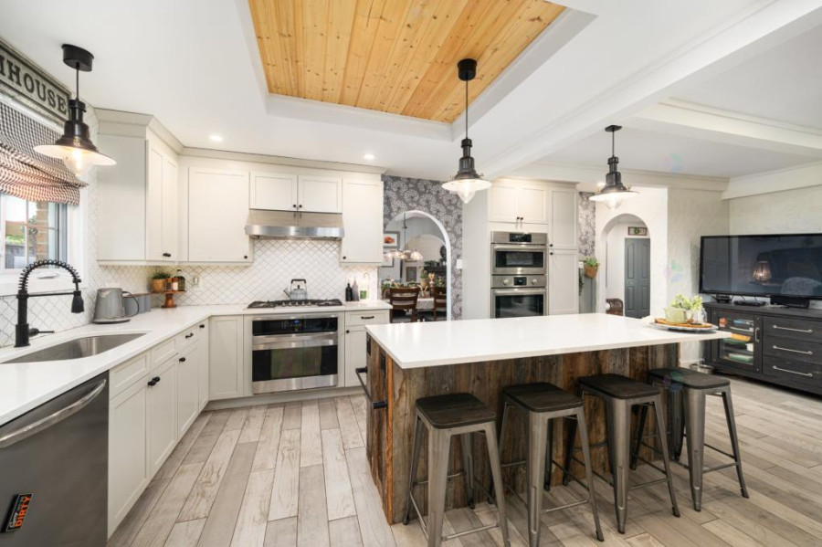 主层空间层次分明,设有宽敞起居厅(带壁炉)、家庭厅、正式餐厅与开放式厨房。厨房为2021年全新规划,配置大中岛、石英台面、双内嵌烤箱、天然气灶台、微波炉、冰箱与高储物橱柜,并完成天花保温、灯光重配与吊顶造型等细节升级。主层另设洗衣间及独立洗手间,提升日常生活便利性。