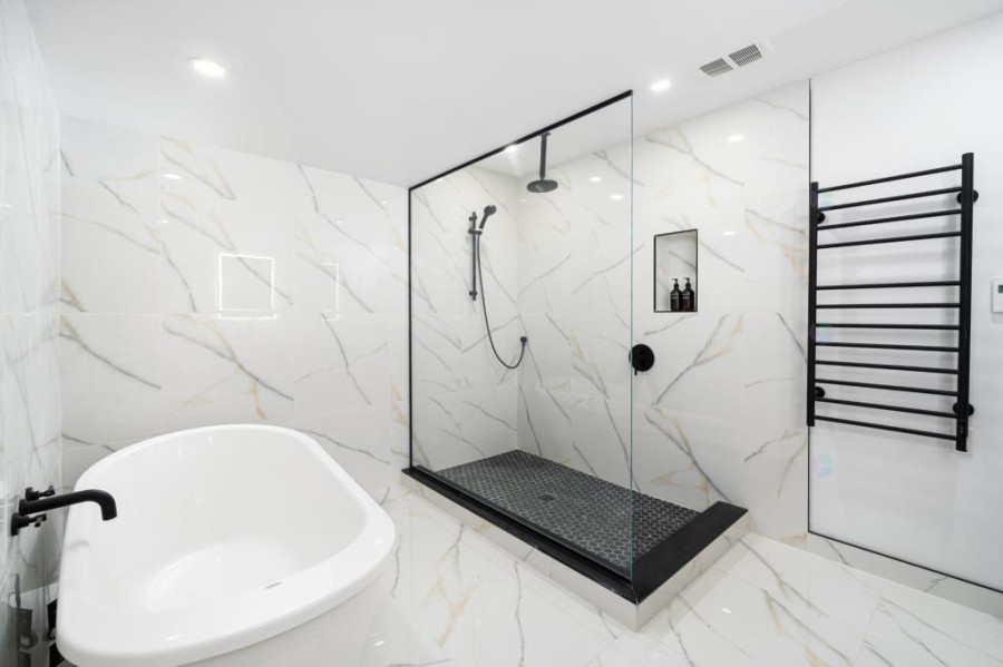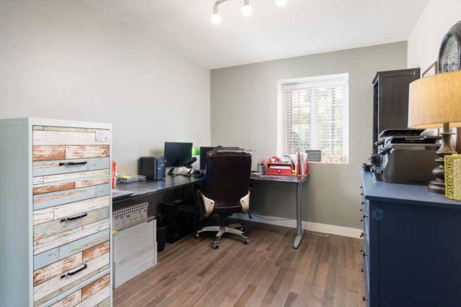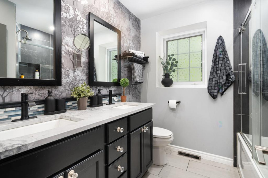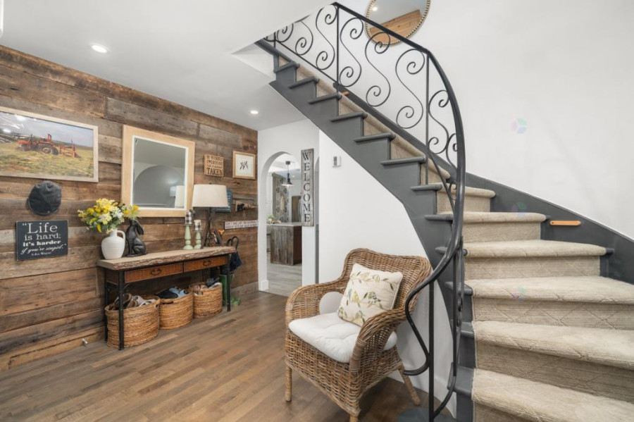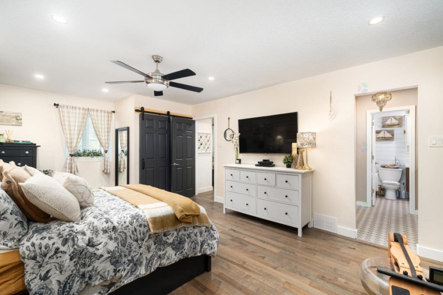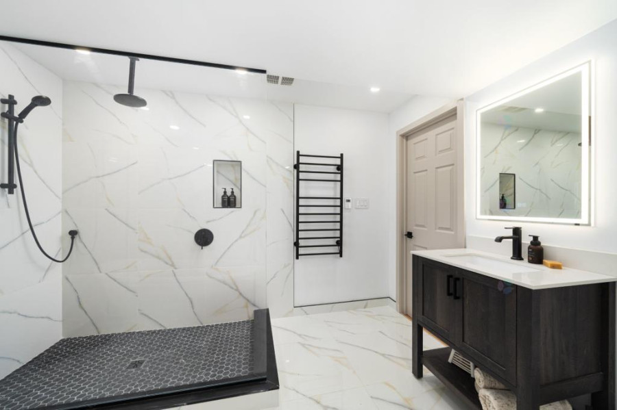 二楼为四间卧房配置,其中主卧空间宽敞,设有步入式衣帽间与全新装修卫浴(含玻璃淋浴、双盆台面、现代柜体等)。其余三卧采光良好,空间方正,适合孩童、书房或客房使用。楼层另设家庭卫浴及阅读角,舒适实用,格调温馨。地下室空间灵活,2022-2024年分阶段翻新。设有大型多功能厅、第五卧房、全新卫浴(含地暖、暖毛巾架)与后院独立出入口,适合打造成影音室、办公空间或长者独立居住区。配套机房与储藏空间完善,双层隔热、地面抬升、结构更新俱全,整体安全稳固。