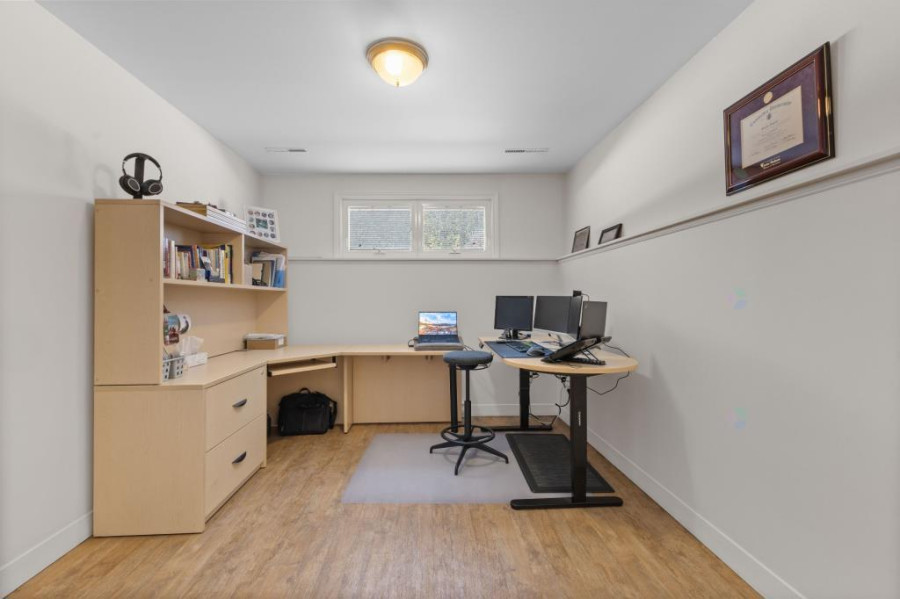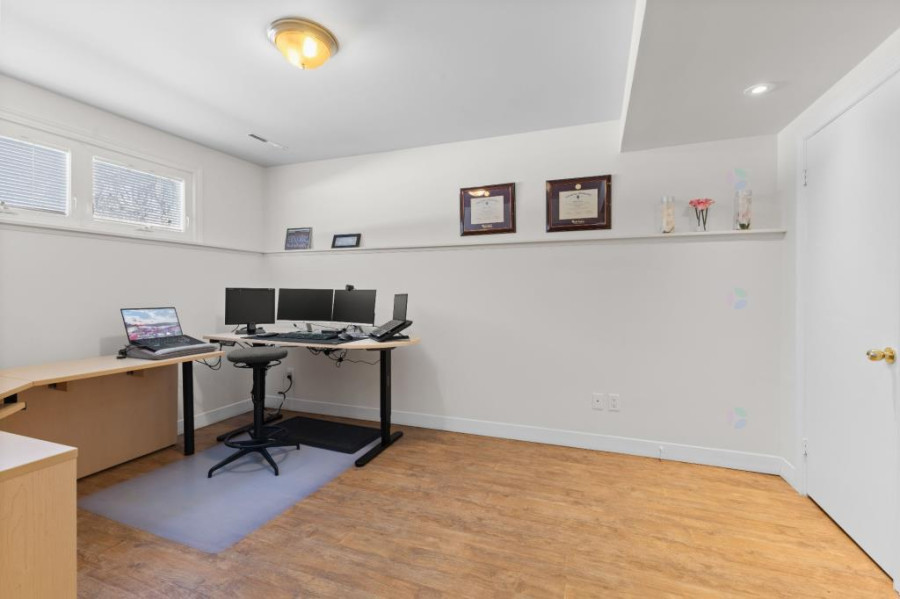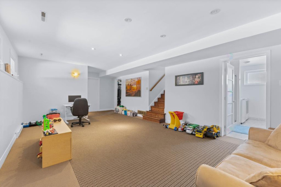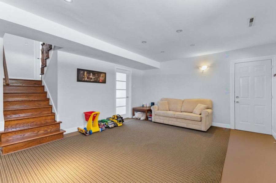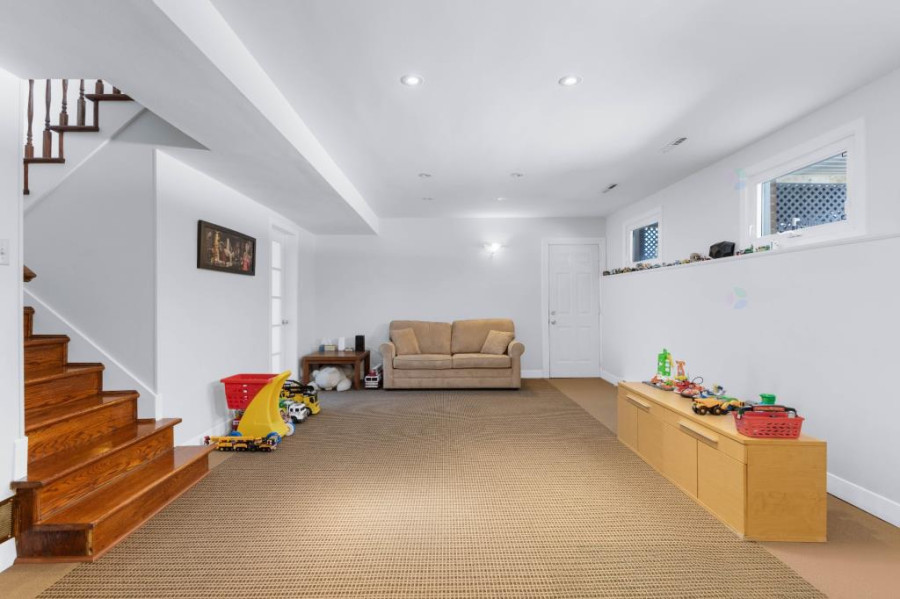 地下室为全装修空间,设有额外两间卧室、一间大型起居室及洗衣房,并附一套独立卫浴,是理想的亲友居住、儿童游戏或娱乐影音空间。地板材质多样,包括地毯、纤维板及瓷砖,区域划分合理,采光与通风兼具。户外空间宽敞,车道可停四车,另设一间内建单车位车库,为日常生活提供极大便利。前后院草坪平整,整洁好养护,花园边界以高大绿篱包围,隐私性高。整屋配备热泵系统,附带灯具与窗帘,可即刻入住。