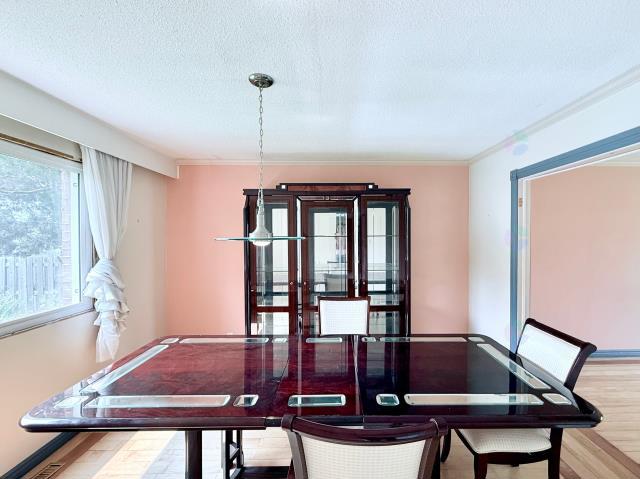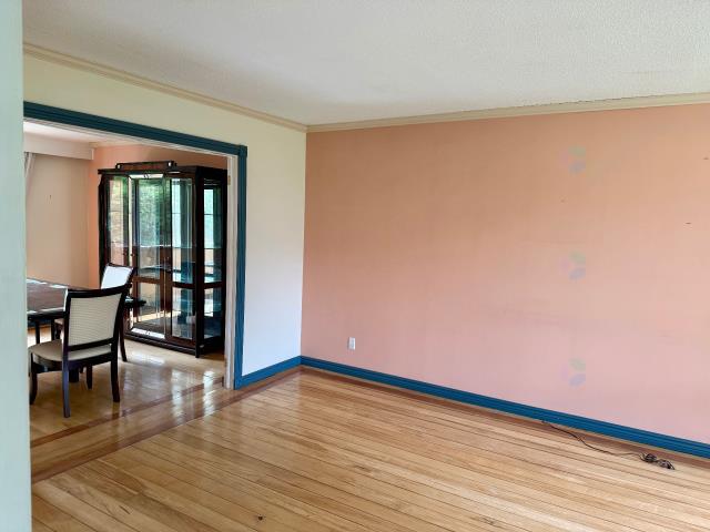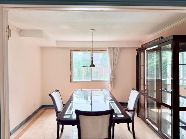 主层设有正式起居室与餐厅,空间方正,铺设原木地板,自然光线充足。餐厅连接大型厨房,布局理想,适合重新规划打造现代化烹饪空间。主层后方另设独立家庭厅,配置壁炉与落地窗门,通往后院平台,营造舒适生活动线。另有一间访客洗手间,为日常使用提供便利。