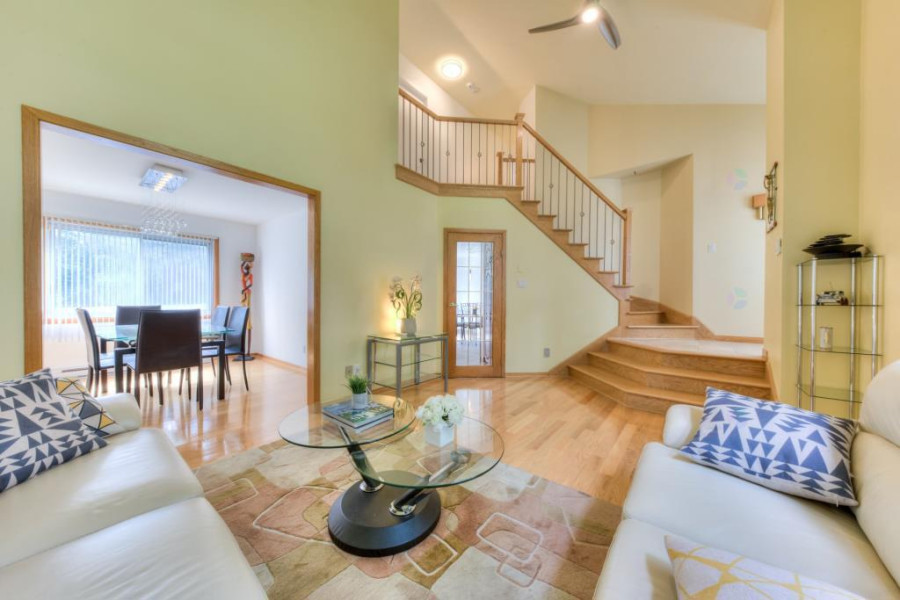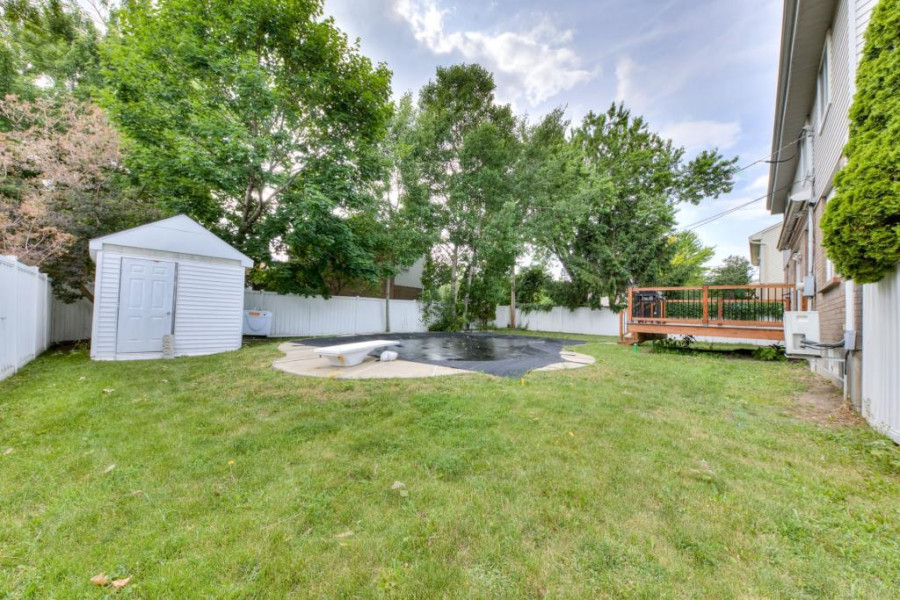 本栋错层别墅坐落于Kirkland西北区成熟住宅社区,地块方正宽敞,总占地7,211平方英尺。街道宁静,邻里友善,门前铺设Pave-Uni车道与台阶,外观整洁雅致,正对绿意植被,环境舒适。后院朝南,采光充足,设有精美平台与地下泳池,为夏日休憩与家庭聚会提供理想空间。