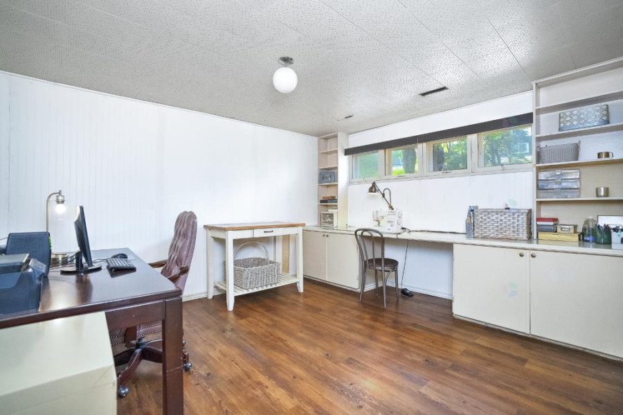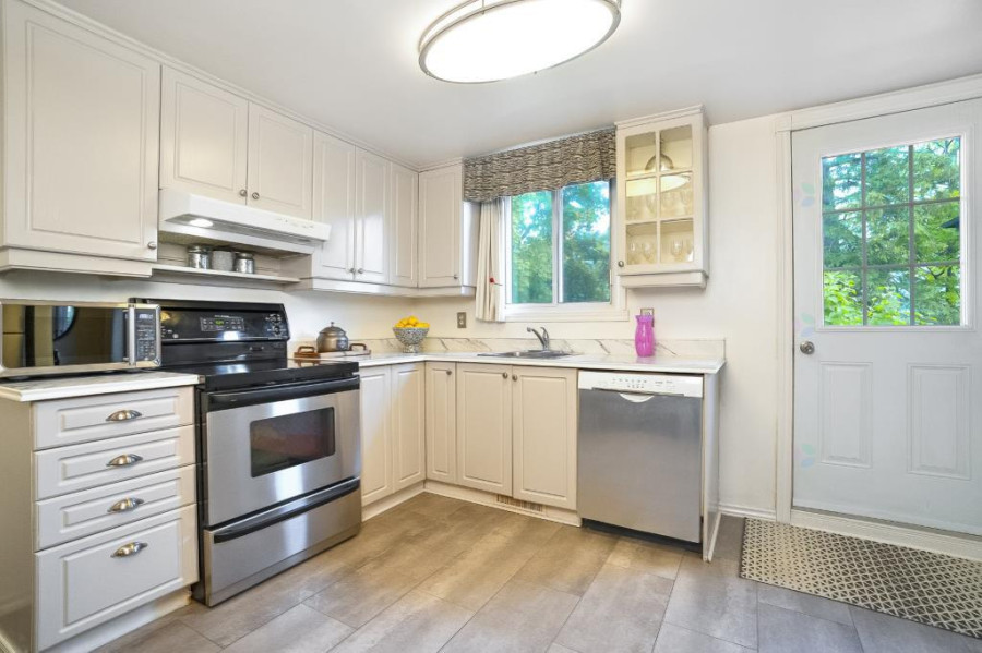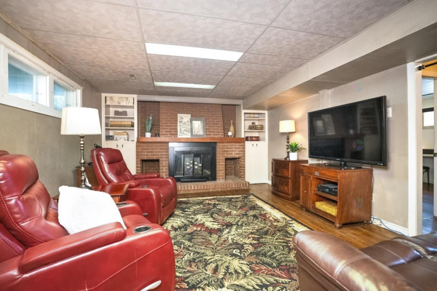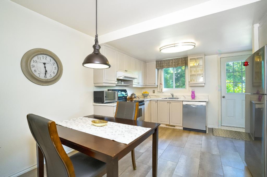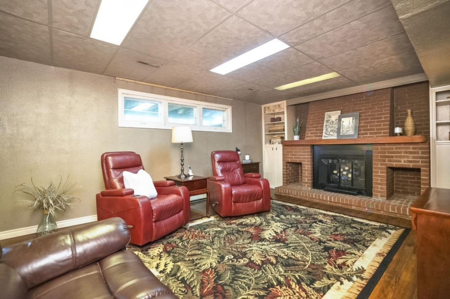 主层室内格局清晰,共设有3间卧室、1间完整浴室、客厅、餐厅与厨房。主卧宽敞明亮,客餐厅铺设优质强化地板,厨房配有白色橱柜与大型窗户,采光极佳,另有专属餐区与通往后阳台的门廊,适合家庭日常与宾客接待。地下室空间完整装修,设有一间额外卧室、一间浴室、宽敞家庭厅及洗衣房。家庭厅配备木质壁炉,为家庭休憩与冬季聚会增添温馨氛围。洗衣房附设第二台冰箱与储物空间,也可改为多功能工作间或健身房。