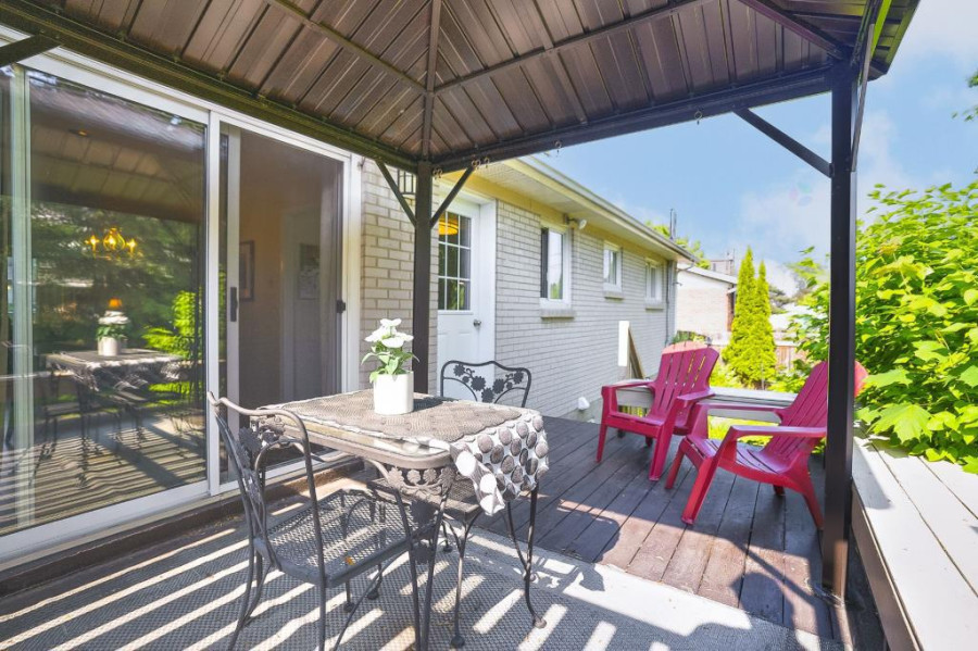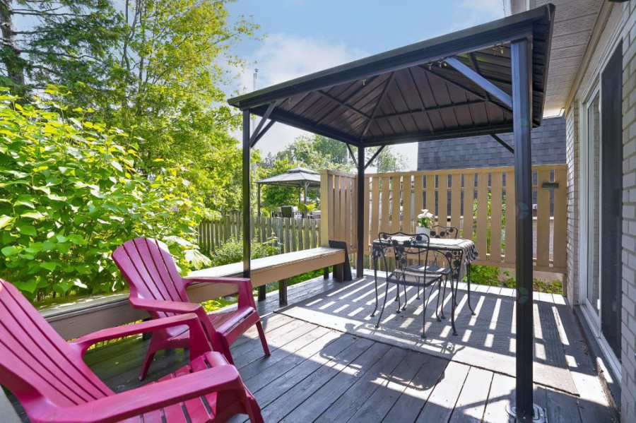 后院为本屋亮点之一,铺设大面积平台,附有金属Gazebo(含在售价中)与储物小屋,绿篱环绕、园艺丰富,既可私享晨光时光,也适合夏季烧烤、亲友聚会。屋前亦设双车道停车位与一车位车库,出入便利。