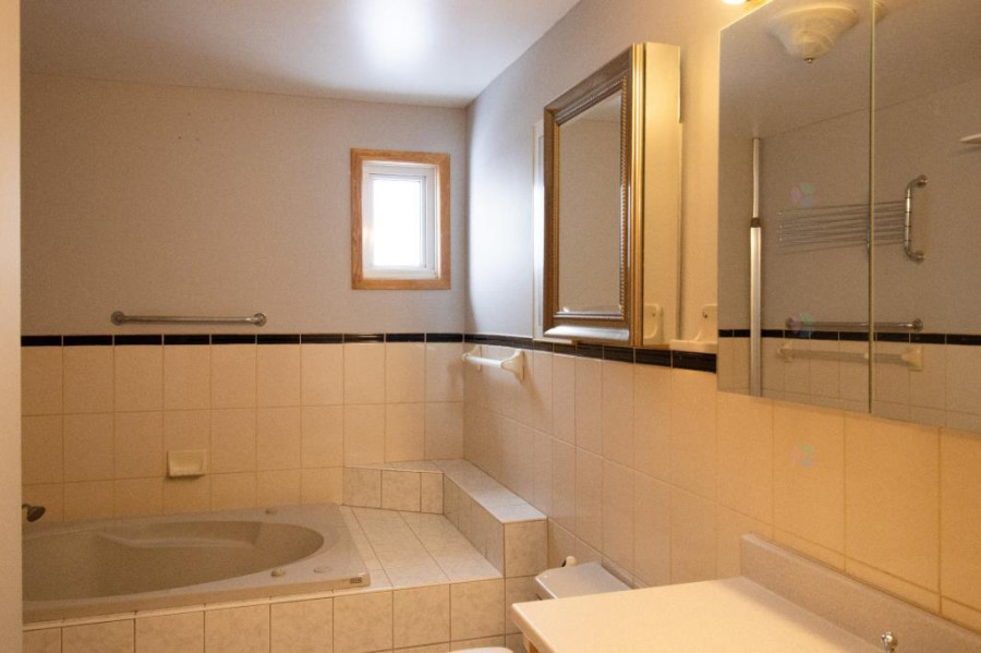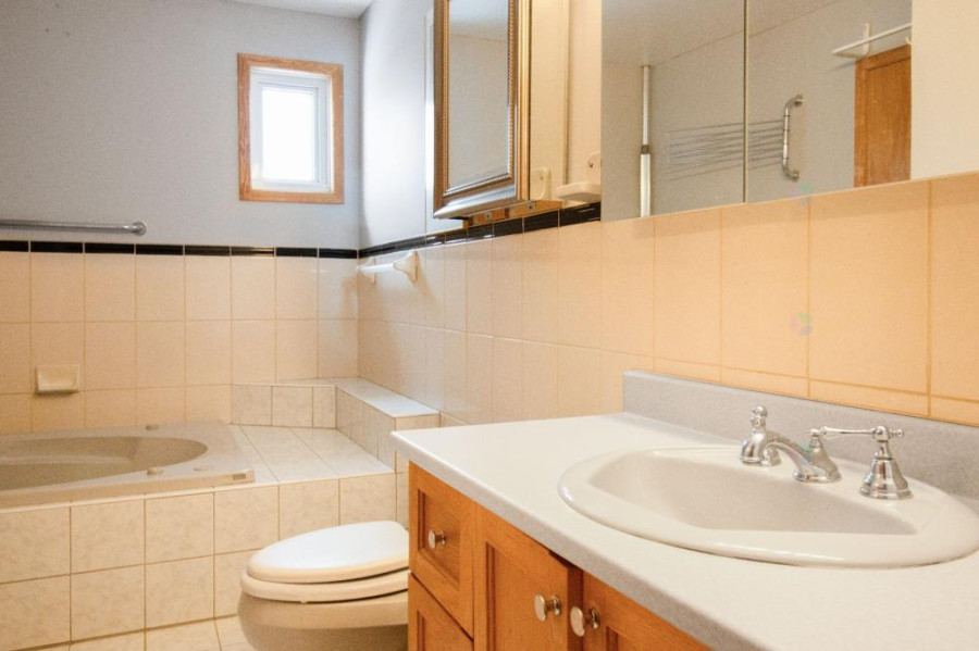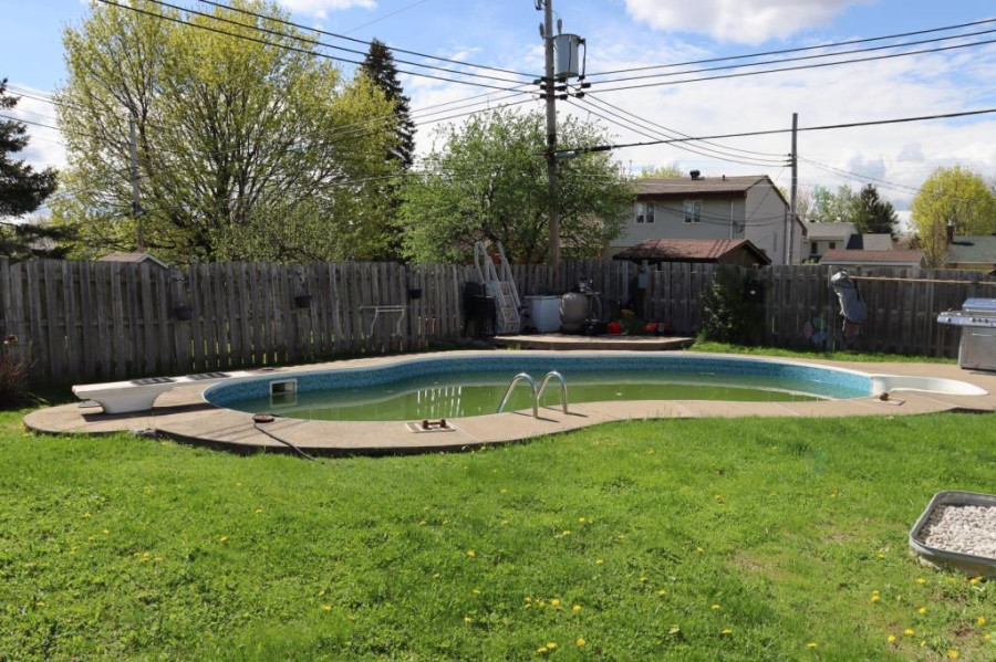 二间浴室分别位于主层与地下室,均采用陶瓷地面与独立淋浴/浴缸配置,整洁实用。地下室格局方正,另设两间卧室及一间大尺寸家庭厅,木地板铺设一体延伸,空间可作多代同堂、自雇工作区或长租房使用,灵活性高。洗衣房宽敞明亮,亦可作为储藏与后备空间使用。后院全围栏围绕,搭配整齐草坪与地面砖铺,设有大型地面泳池,夏季可尽享私人户外休闲时光,是亲子玩乐与朋友聚会的理想场所。整体格局经过优化,采光与实用性兼备,房屋现况良好,无需重大翻新,即可入住。
