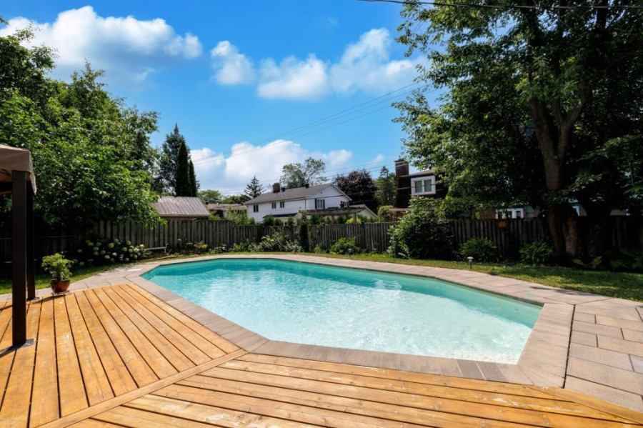 这栋西岛优质物业位于 Beaconsfield 市北部成熟住宅区 Sherwood 社区,坐落于宁静街道,邻近 École primaire, 公园、REM 快铁、医院与高速公路,生活便利、环境优雅,深受家庭买家欢迎。房屋外观大方整洁,前院设有双车道与宽敞双车库,适合多车家庭,整体屋况维护良好,庭院绿意盎然,后方为全围栏私密空间,设有地面加热泳池与露台,是夏日享受户外生活的理想空间。