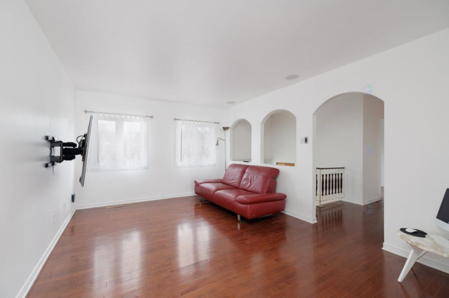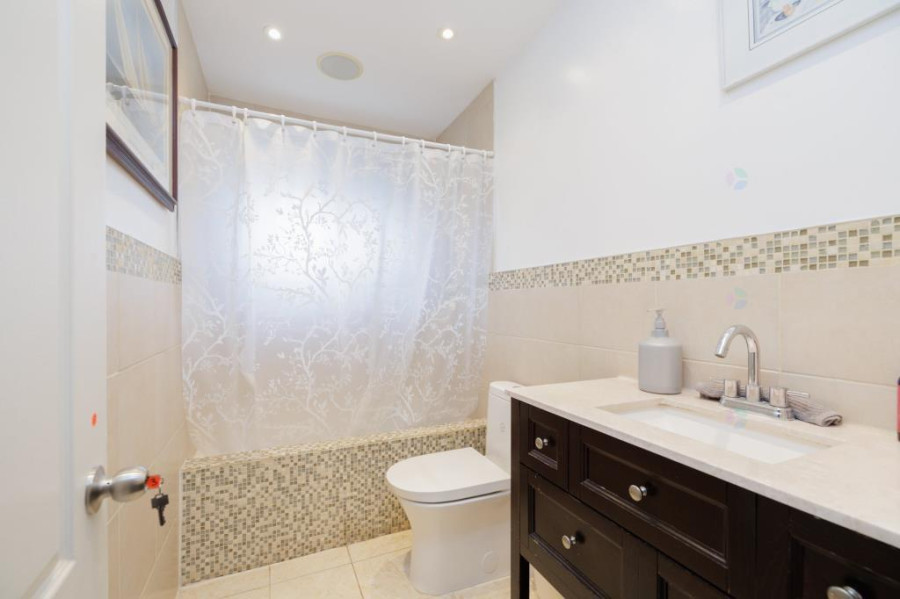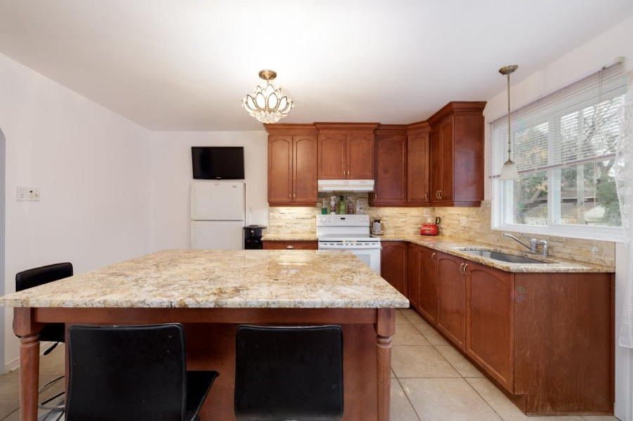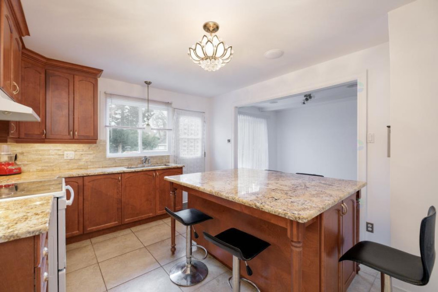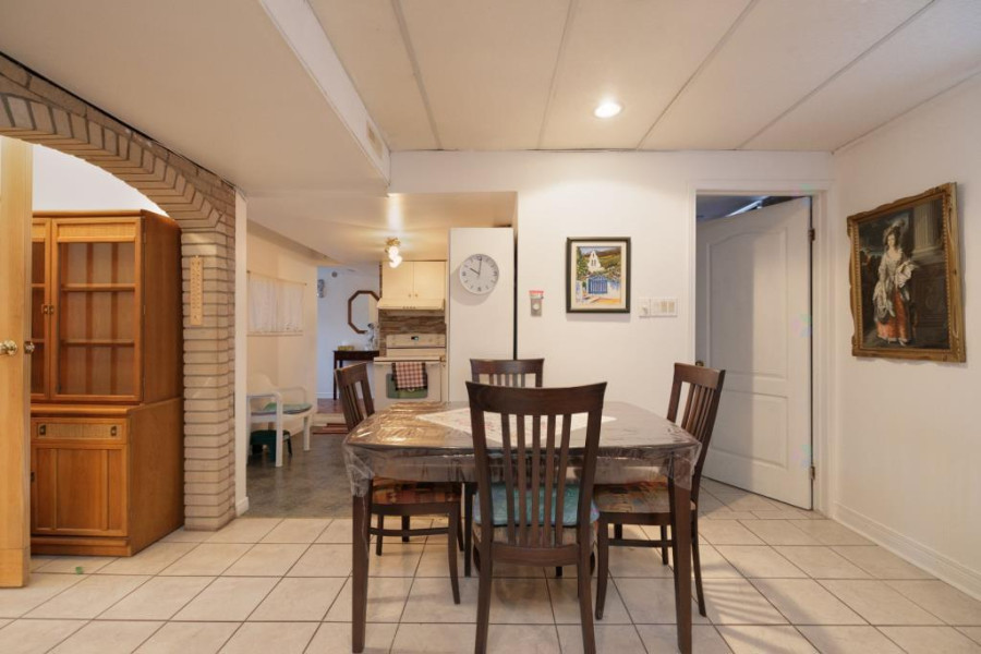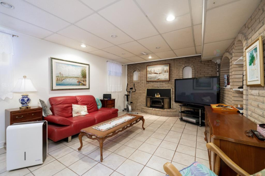 主层布局方正,采光充足,设有宽敞客厅与正式餐厅,厨房配备花岗岩台面与充裕储物空间。三间卧室均铺设木地板,适合家庭成员多样需求。浴室现代明亮,细节考究,满足日常生活所需。地下室空间开阔,层高充裕,设有大型娱乐室并带壁炉,另有两间卧室、独立厨房、餐区、办公室及洗衣房,功能齐全,非常适合作为亲属套间、长辈居住或独立生活空间。后院为全封闭私家庭院,配备地上泳池、两间储物小屋及宽阔木质露台,既适合户外休闲也方便举办家庭聚会。庭院绿化良好,四季景致宜人。