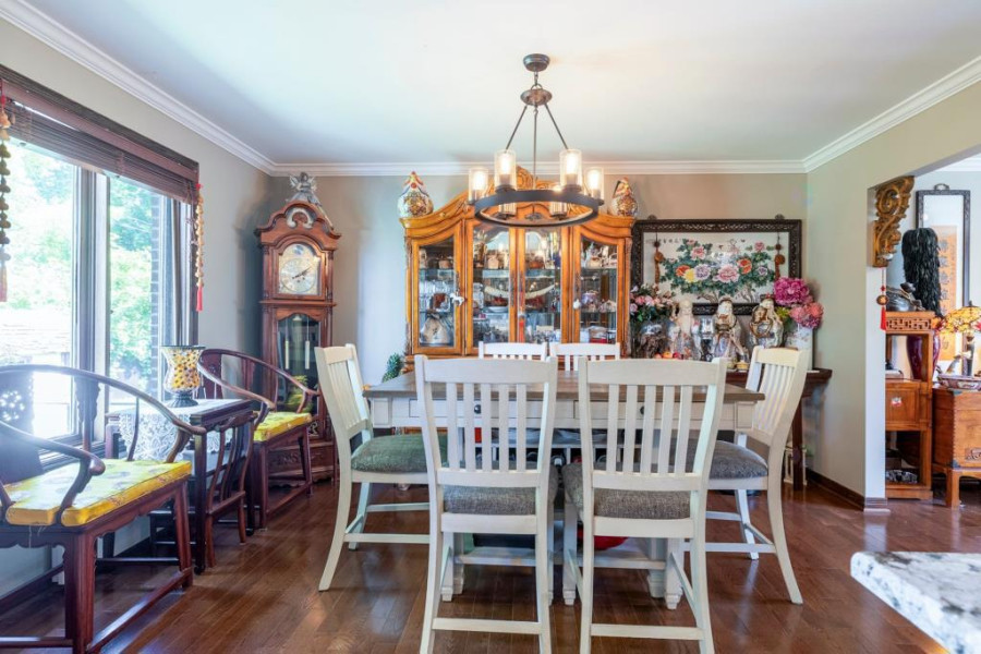 主层设有采光充足的客厅与正式餐厅,铺设优质木地板。厨房与餐区采用开放式设计,配有宽敞中岛,方便日常用餐与家庭聚会。毗邻的家庭厅设有高效壁炉,直通大型后院露台,营造出温馨与户外休闲相融合的生活体验。二楼设有三间宽敞卧室,其中主卧带独立卫浴,完全保有私密空间;次卧空间充裕,其中一间带有6x6英尺的温馨壁龛,可作儿童阅读角或玩耍区。楼层布局分明,动静分区合理,满足家庭生活的多样化需求。