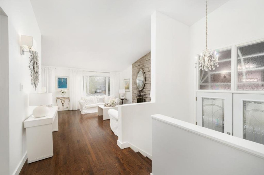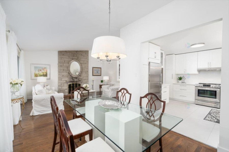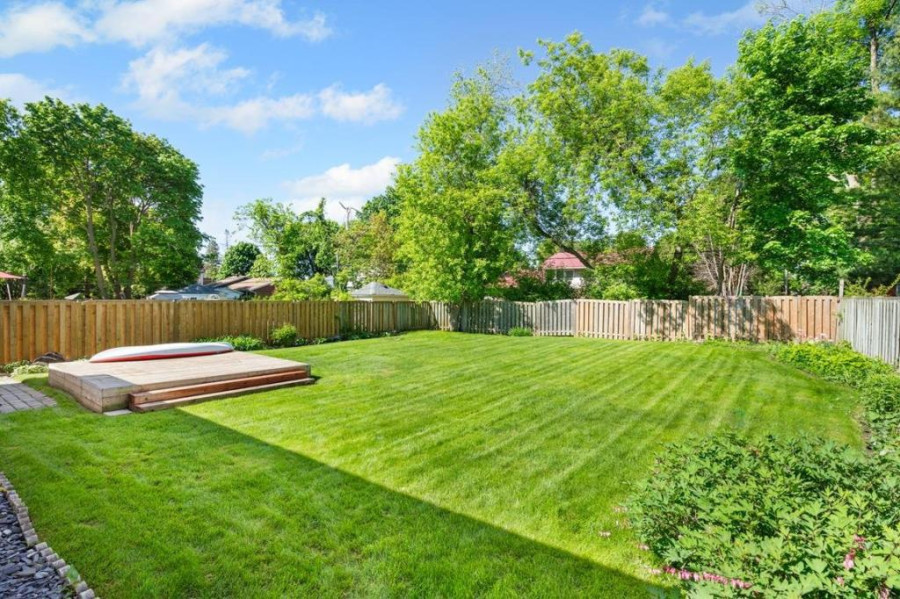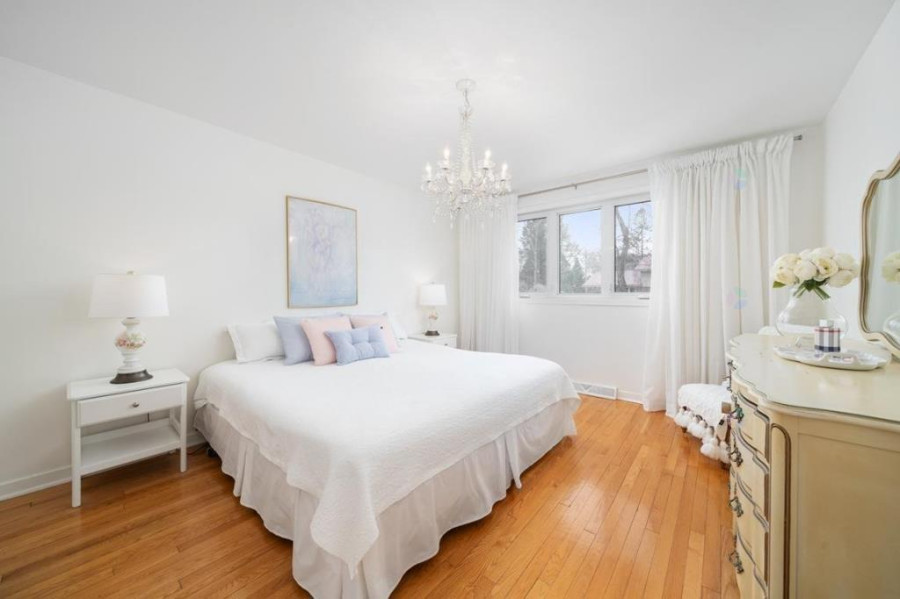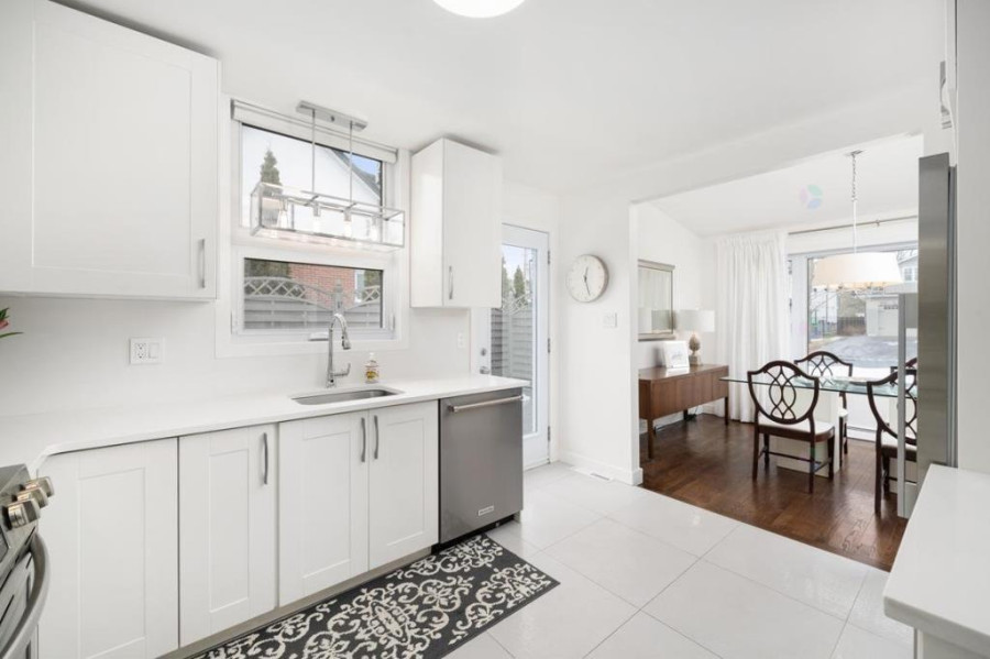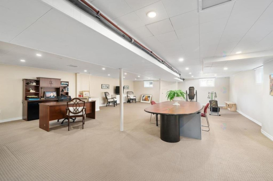主层布局开阔,客厅挑高并设有大面积落地窗与石质壁炉,采光充足且温馨大气。餐厅与客厅相连,形成开放式空间,适合家庭聚会与宴客。厨房经过翻新,洁白橱柜搭配不锈钢家电,动线流畅,并带有通往后院露台的门,便于户外烧烤与休闲。主卧配有独立盥洗室,其余卧室面积适中,均铺设木地板,整体色调清新明亮。地下室铺设地毯,设有大面积多功能空间,可用作娱乐室、家庭办公室或健身区,同时配备宽敞储物间,满足日常收纳需求。