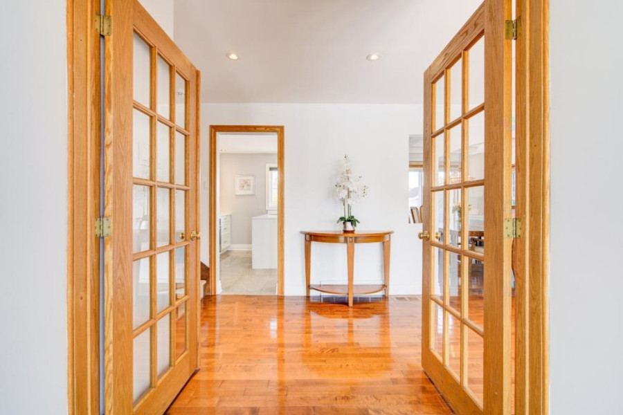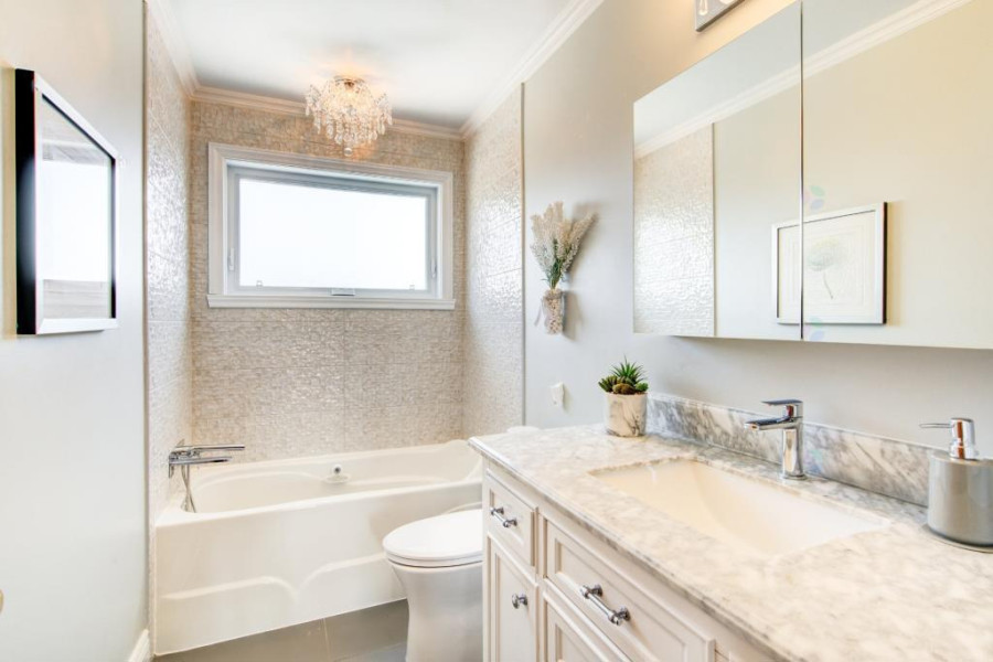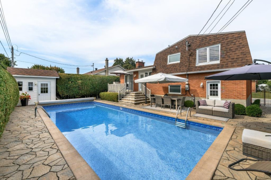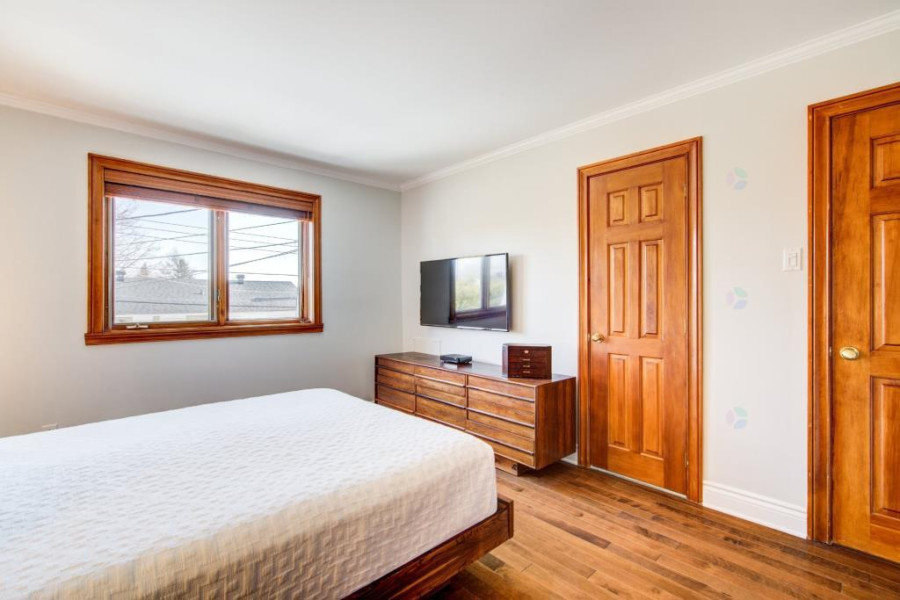 卧室区设有4间舒适卧室及2间翻新浴室(2017-2018年翻修),用料考究,细节考量周到。家庭活动区位于半地下层,配备木柴壁炉,毗邻独立洗衣房与储物空间,安静实用。后院为私密度极高的户外休闲区,设有16x40英尺加热盐水泳池、天然石材阳台及环绕式园林景观,四周10英尺高雪松树与防冻围栏,兼具美观与私密。车道铺设Permacon Mega-Arbel石板,与后院铺装连成整体,形成度假式庭院氛围。