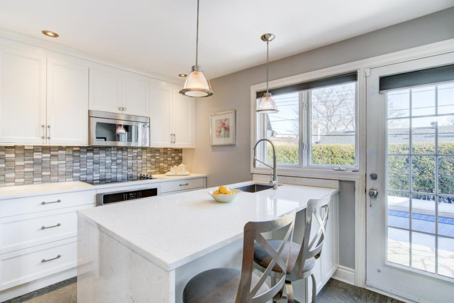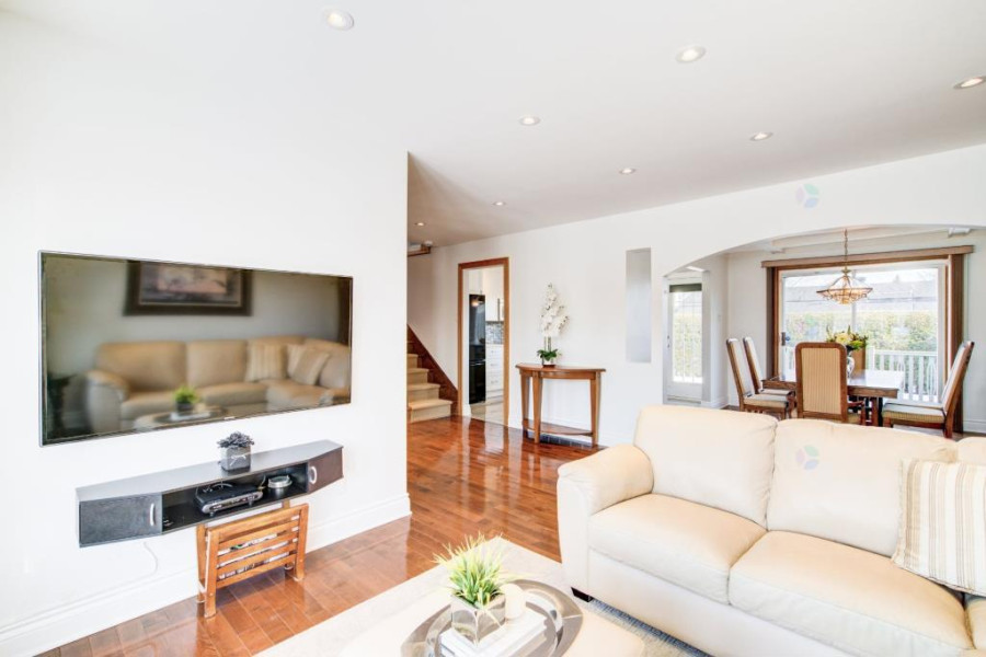 本套精装修分层独立屋位于Kirkland市优质住宅区,地理位置优越,步行可至新REM轻轨站,邻近多所名校(Émile-Nelligan、Margaret Manson、Académie Marie-Claire等),适合注重教育与通勤便利的家庭。房屋外观由知名景观设计师打造,正门台阶与阳台铺设天然石材,花园布局精致,整体展现高端大气的门面效果。