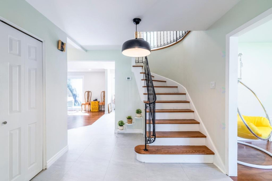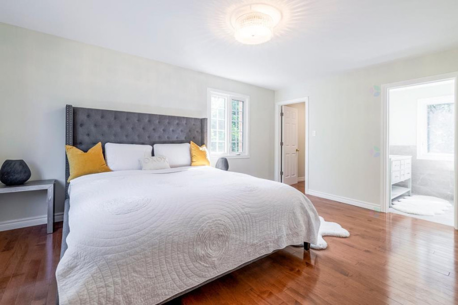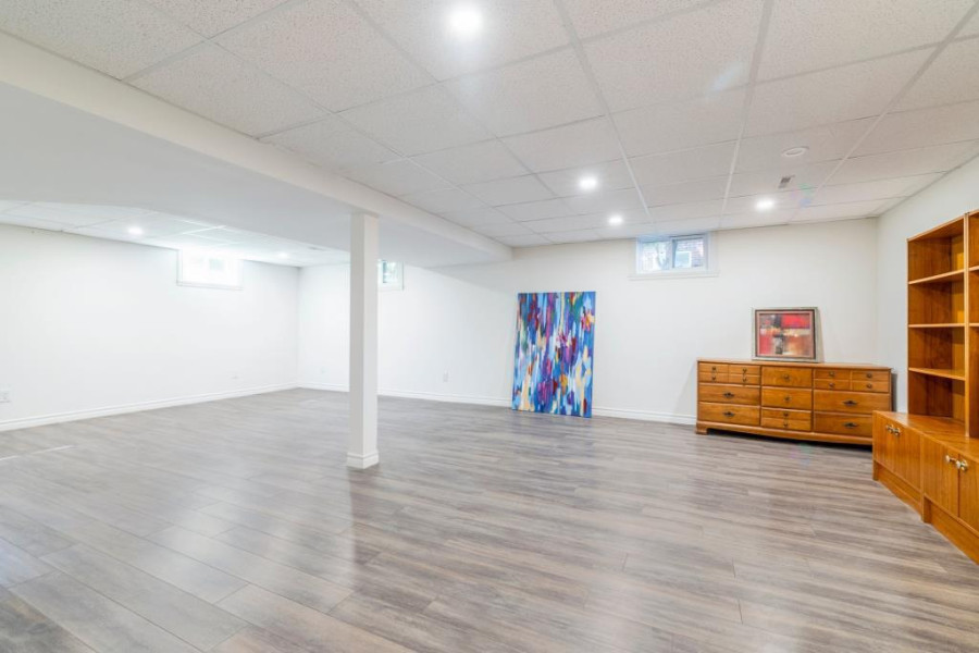 主层设有宽敞客厅与正式餐厅,采光充裕,木质地板温暖雅致。厨房在2024年全面翻新,搭配现代化电器与新橱柜,紧邻早餐区与家庭厅,生活功能完善。额外设有洗衣房与化妆间,布局合理,满足日常所需。二楼规划四间卧室与三间浴室,主卧配备步入式衣帽间及套间浴室,装修考究,空间宽敞。其余卧室均带大窗采光,浴室设施同样在近年全面更新,整体舒适度与现代感兼具,满足家庭多成员的使用需求。地下室已完成翻新,提供大型家庭活动室、娱乐空间与工作间,适合健身、儿童活动或私人影院使用。地板与浴室均为近期更新,功能性与美观度兼备。