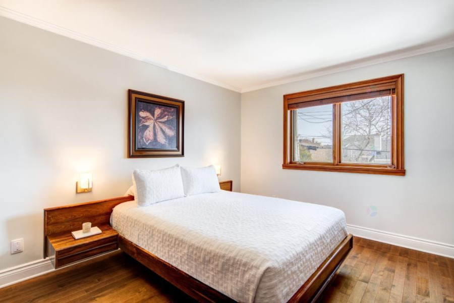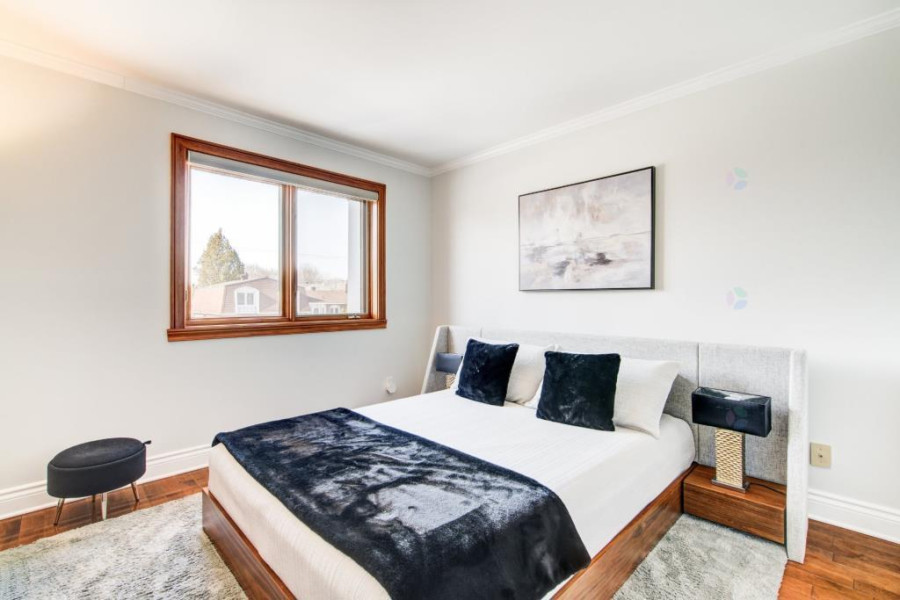 二楼布局合理,设有三间卧室及全浴室,空间舒适,地板为精选枫木,整体质感温暖自然。主卧空间宽敞,采光充足,适合营造宁静私密的休憩氛围。地下室全装修,设有家庭娱乐室与洗衣房,搭配燃木壁炉,兼具实用性与温馨氛围,可作为影音室、书房或多功能空间使用。