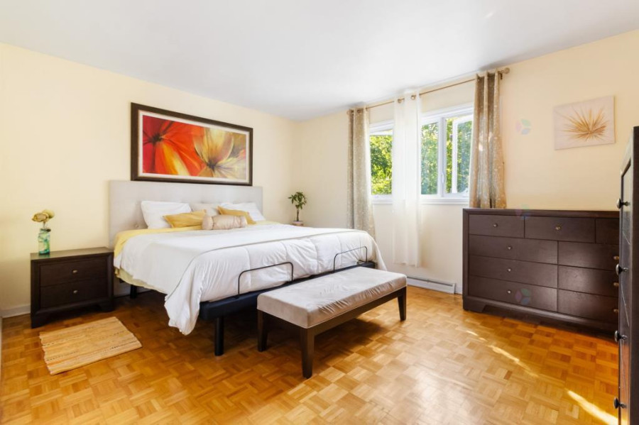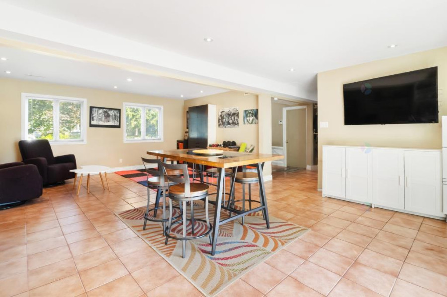主层空间开阔,客厅与餐厅布局合理,采光充裕。厨房经过翻新,设有大型中岛与午餐区,配套实木橱柜与多窗户,视野明亮。主卧宽敞,带步入式衣柜与套间浴室,私密舒适。楼层另配两间卧室及完整浴室,满足家庭需求。地下层设有家庭厅,铺设地砖,空间灵活,可作休闲、娱乐或办公用途。另有卧室、洗衣房及盥洗室,功能齐全,动线顺畅。