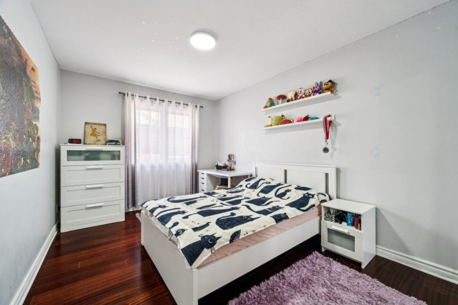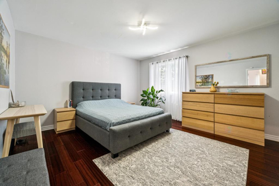 二楼设有三间卧室与两间卫浴。主卧带独立卫浴及衣橱,空间方正舒适;其余卧室同样采光良好,其中一间设有双衣柜。楼层走廊设有独立洗衣间,使用方便。整体以木地板铺设,格调现代。地下室功能完善,包含一间额外卧室,双衣柜收纳充足;并配备完整卫浴(独立淋浴与浴缸)、大型储物区及车库出入口,满足多样化使用需求。空间灵活,可作客房、书房或青少年活动区。