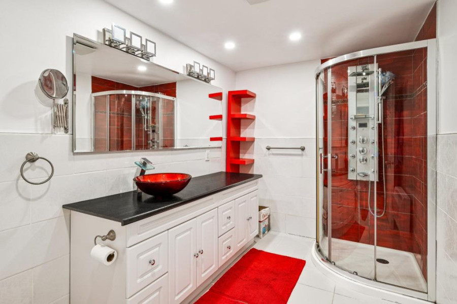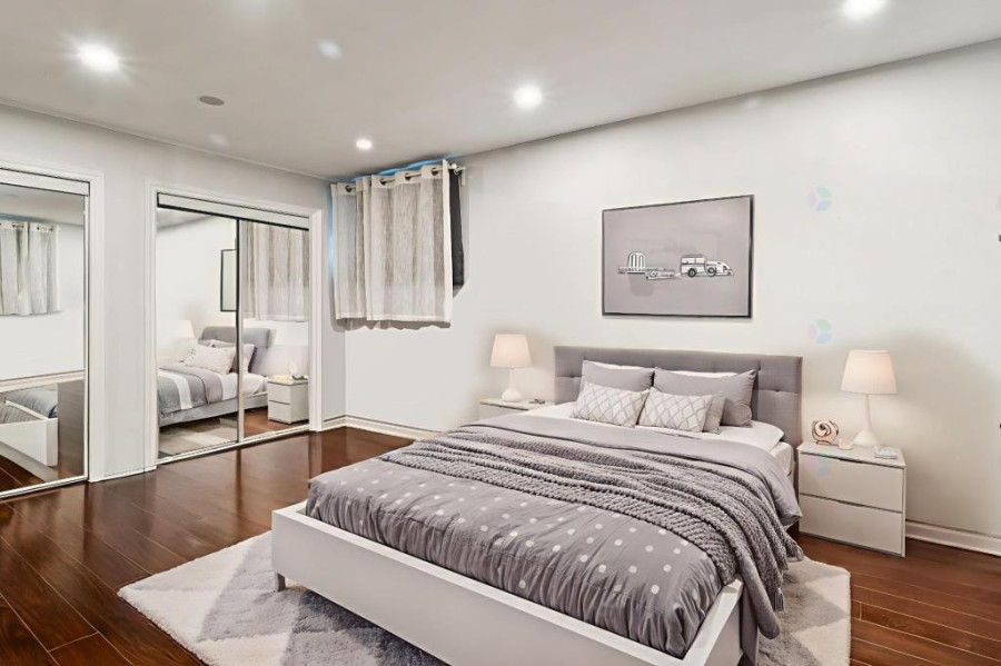 后院铺设石材庭院,私密安静,适合家庭聚会与休闲。景观绿化到位,环境舒适。物业配备中央热泵、双洗衣区(楼上与地下室)、电动车库门及全屋更新的窗户、屋顶,居住条件良好。整体而言,该物业以优越地段、稀缺车位配置及实用布局,兼具居住与投资价值。