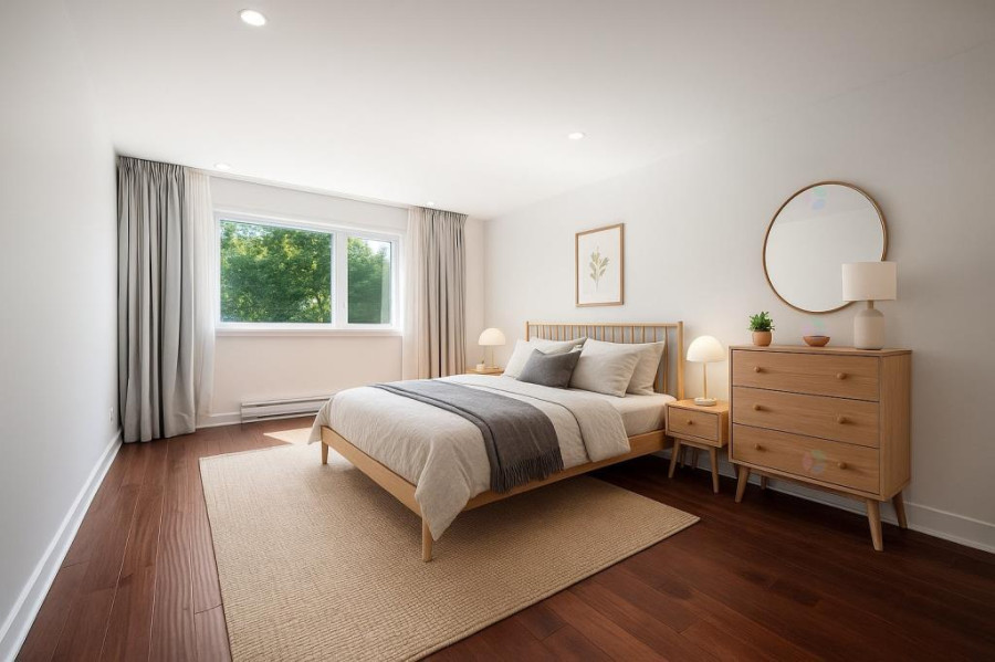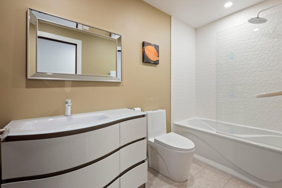 二楼布局合理,设有四间卧室与两个全卫。主卧宽敞明亮,配有步入式衣帽间及翻新套内卫浴。整体空间铺设硬木地板,墙面与门窗全面更换,现代感强。其他卧室空间方正,均具良好采光,适合多子女家庭或书房、客房使用。地下层为家庭多功能区域,设有娱乐室、办公室及额外卧室,配备全新卫浴。空间宽敞灵活,可作为家庭影院、健身房或青少年活动区。房屋配备新电力系统、中央热泵、中央吸尘、双车库及多车位车道,功能性与舒适性兼备。