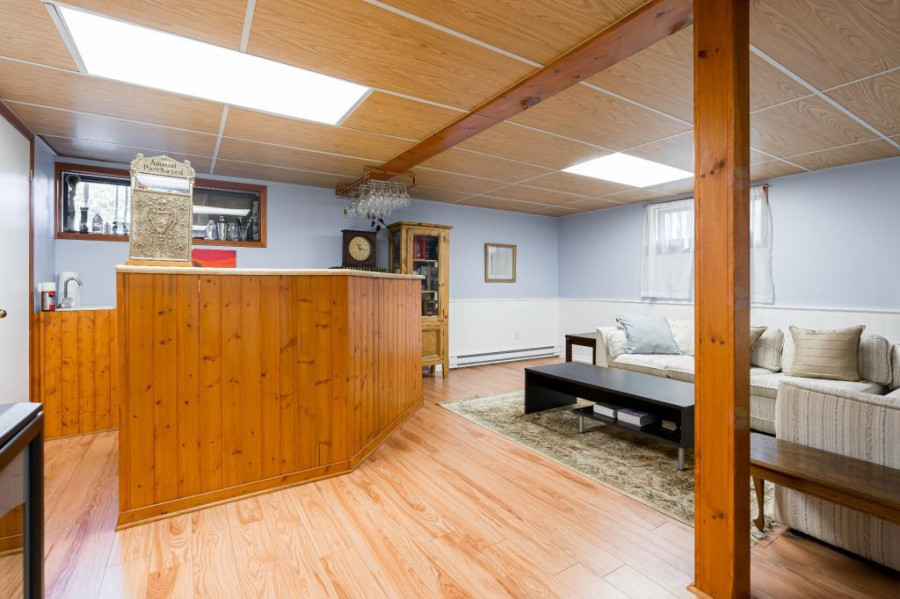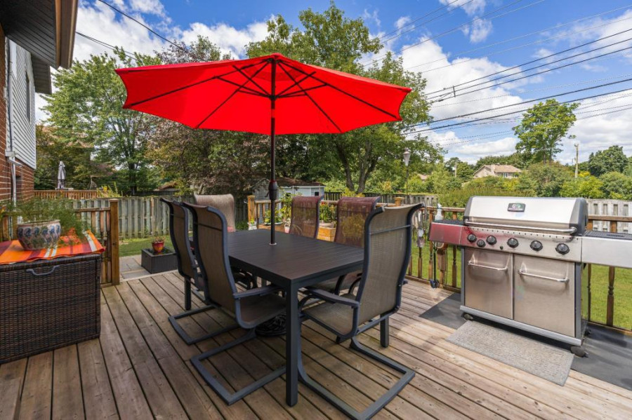 地面层设有宽敞的家庭厅,带燃气壁炉并直通后院露台,同时配备洗衣房、化妆间及通往车库的便利通道。全装修地下室则提供额外娱乐空间,包括大型活动室、吧台、一间卧室及完整浴室,非常适合大家庭或接待访客。后院方正宽敞,已全面围栏与景观设计,设有高架木质平台、地面石板露台及储物小屋,无遮挡的私密空间更添安静舒适的居住氛围。