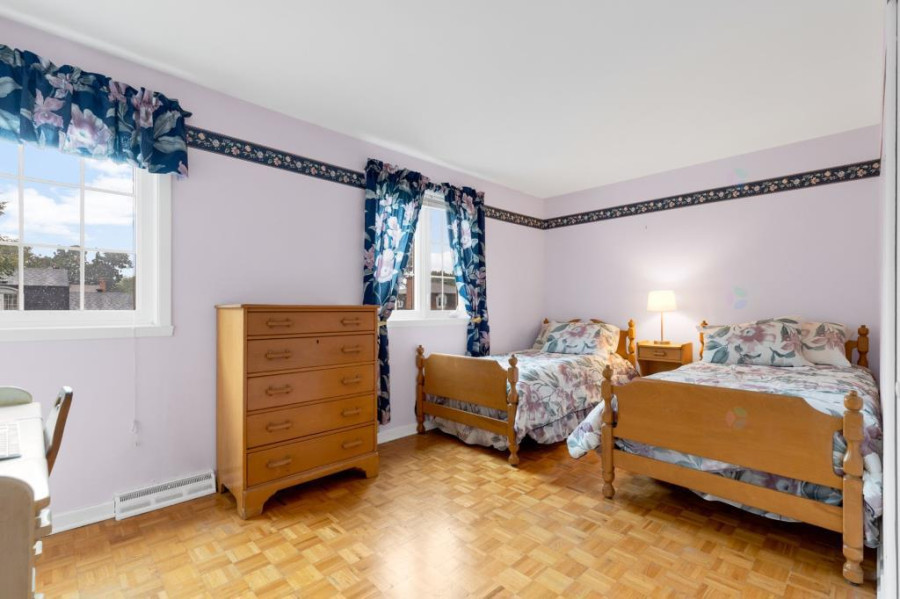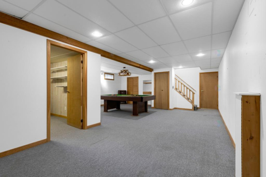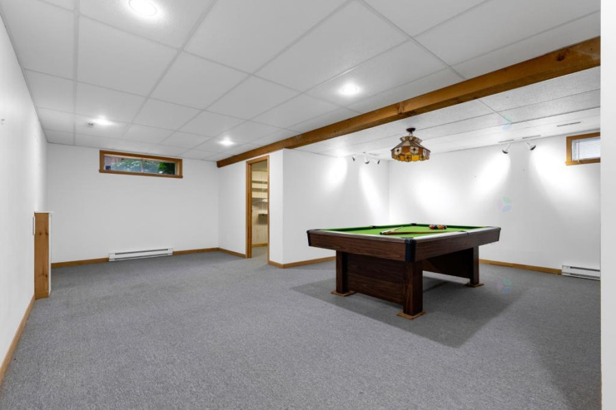 主层采用传统分区布局,大窗客厅采光充足,适合接待访客。独立餐厅与厨房分区明确,厨房空间宽敞,拥有良好结构,可根据需求进行现代化升级。后侧家庭厅以木梁天花与壁炉营造温馨氛围,适合休闲聚会与日常起居。主层另设洗衣间、盥洗室,并配有额外淋浴间,便利性极高。二楼提供四间卧室,主卧空间宽敞,配有独立卫浴。其余卧室均铺设木地板,布局合理,适合作为儿童房、书房或客房使用,另设第二全浴室,满足家庭生活所需。地下室为完整成品空间,包括娱乐室、办公室、储物间与工作间,功能多样,可灵活改造为家庭影院、健身区或兴趣工作坊,极大提升实用性。