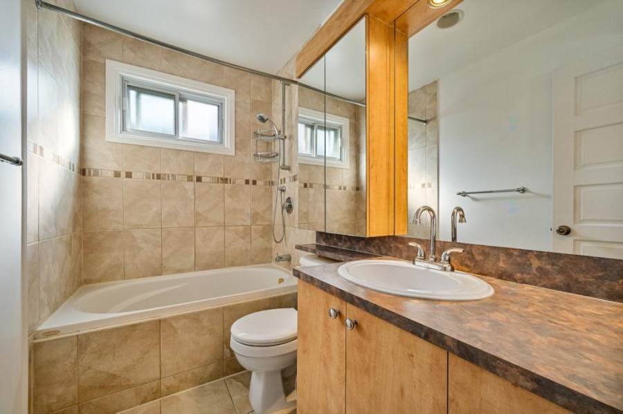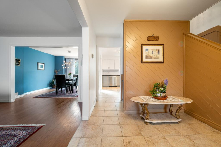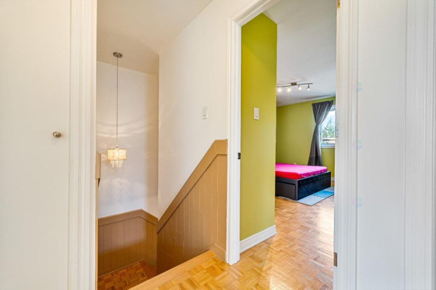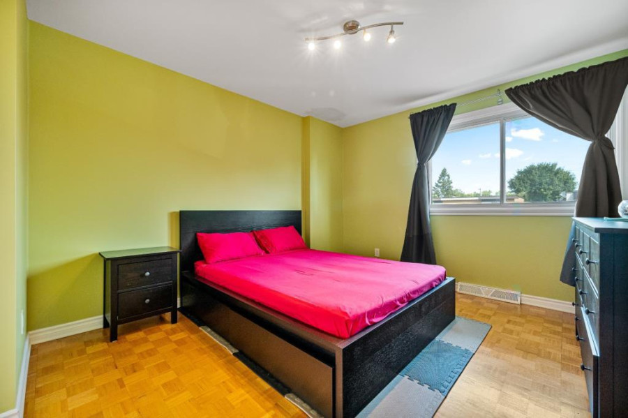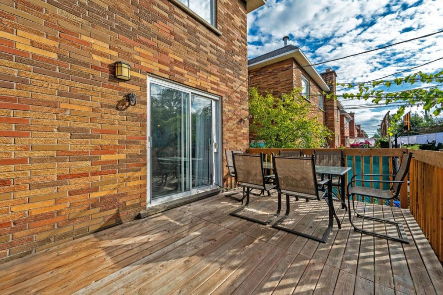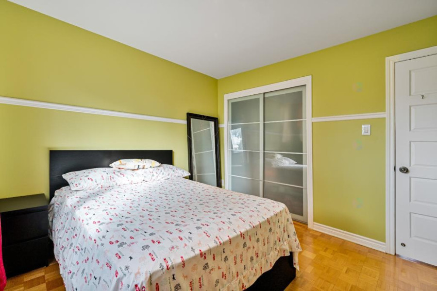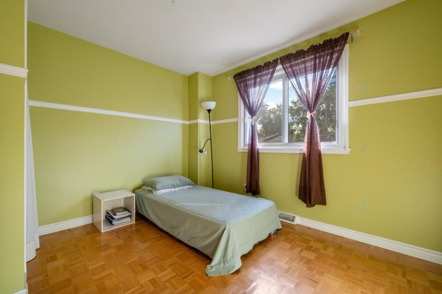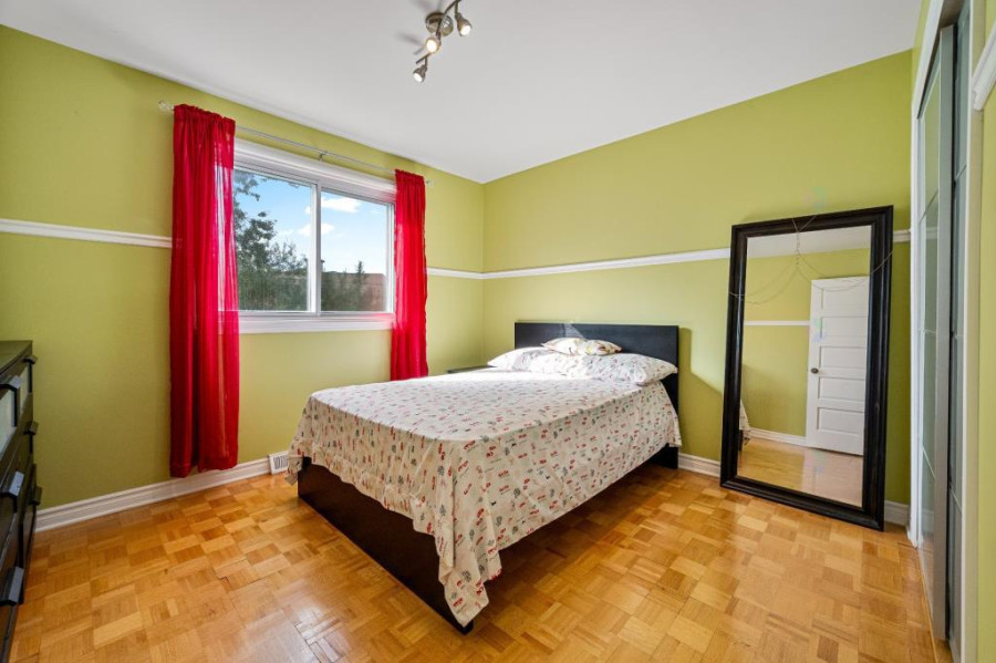地下室已全面装修,设有大面积家庭活动室,可用作影音室、娱乐区或儿童游乐区,并配有洗衣区及冷藏室。另设一间盥洗室,充分提升生活便利性。房屋后院设有围栏,配备大露台及绿化空间,适合户外烧烤、园艺及亲子活动。前院附带单车库及双车位车道,实用性强。周边教育资源丰富,包括Vanier学院、LaurenHill中学、Cégep de Saint-Laurent、Collège Bois-de-Boulogne,以及多所小学如Bois-Franc-Aquarelle与Cardinal-Léger,教育氛围浓厚。附近还有Place Vertu购物中心、诊所、医院及各类商铺,生活便利。