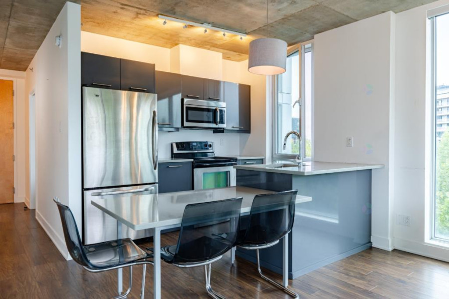 木头哥最新上市现代公寓!本套公寓位于 Griffintown 的核心地段,坐拥蒙特利尔市中心优越区位,地理位置得天独厚。社区紧邻 Lachine 运河与市中心商业圈,步行即可抵达地铁站、公交、自行车道、公园、餐厅、商店以及老蒙特利尔,生活便利度极高。整栋建筑外观现代,配套完善,居住环境兼具城市活力与高端舒适。