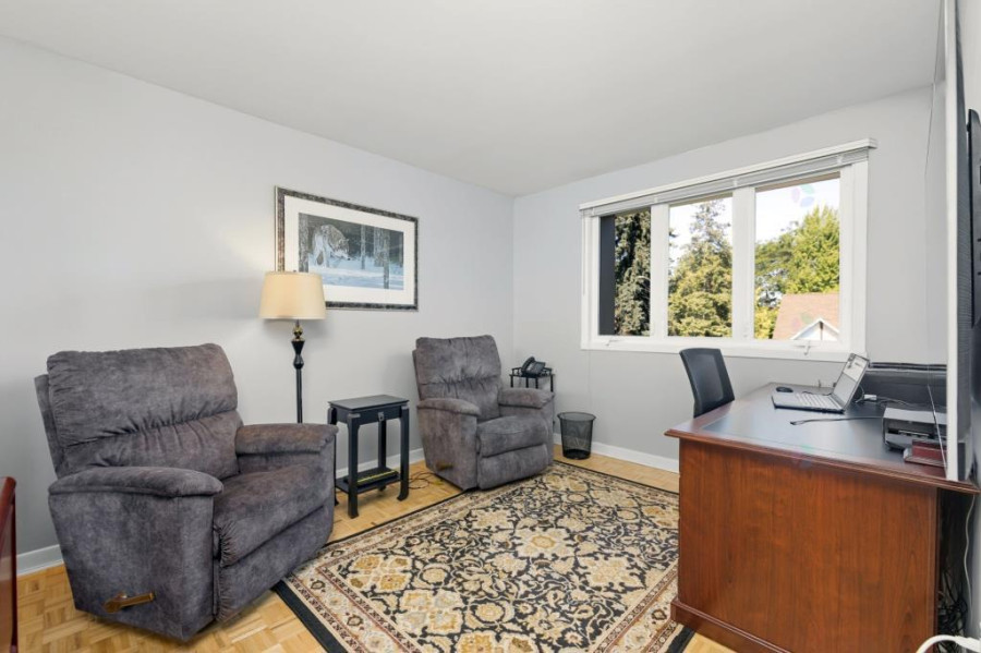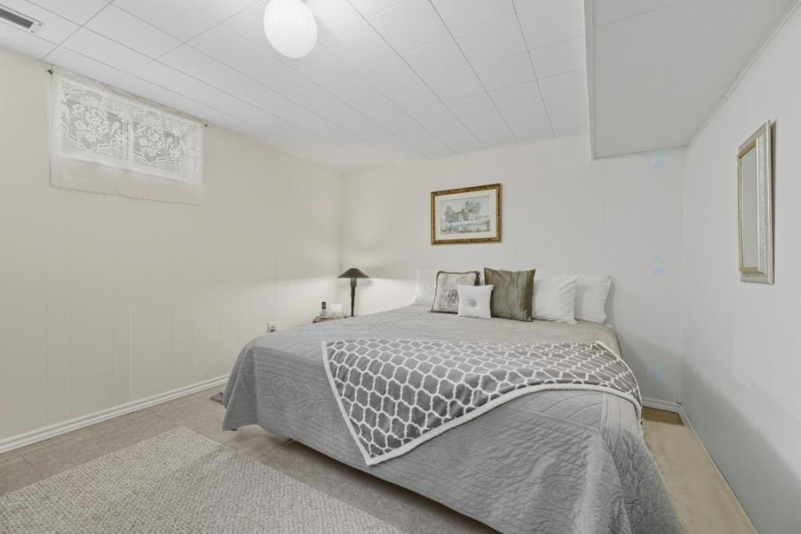 二楼共设四间卧室,主卧带套间浴室及步入式衣帽间。其余卧室均铺设拼花木地板,布局方正,采光良好,适合家庭成员或书房使用。楼上另设一间全浴室,满足家庭日常需求。地下室为全装修空间,配有大型娱乐室、卧室、储藏区及机械间。卧室空间灵活,可作客房或办公区使用。整体地下空间干净实用,功能多样。